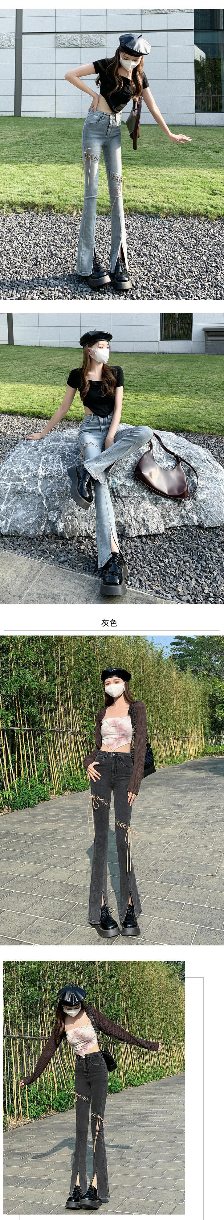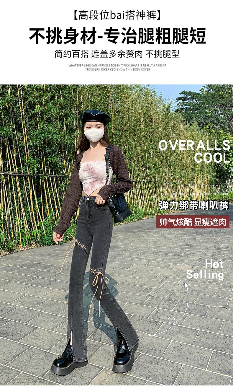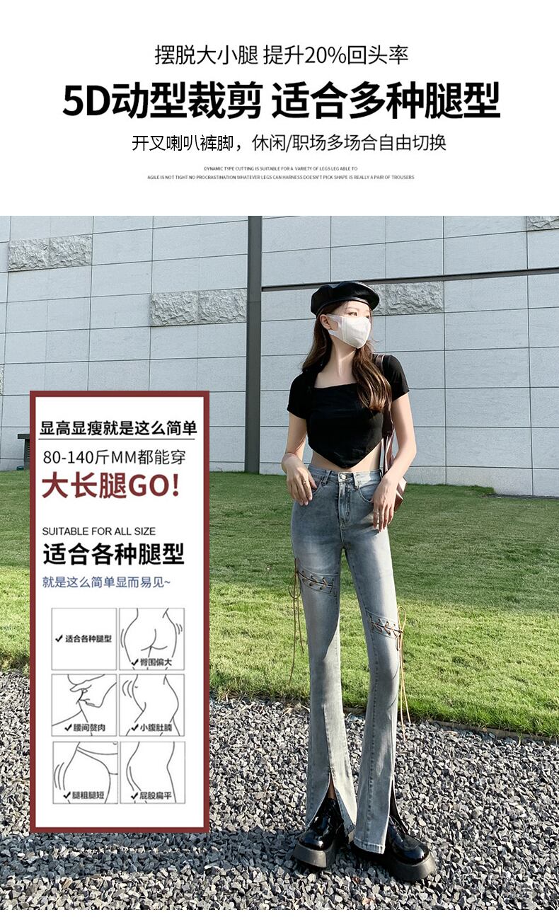 スリットジーンズ 夏服ハイウェスト薄手ストラップ 夏物 ウエスト コーデ Marchs65587938407