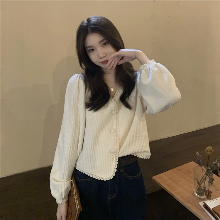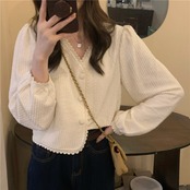 スプリングVネックレースシャツ トップス 大人ガーリー スウィート キュート カジュアル 春物 コーデ Marchs22083512194