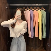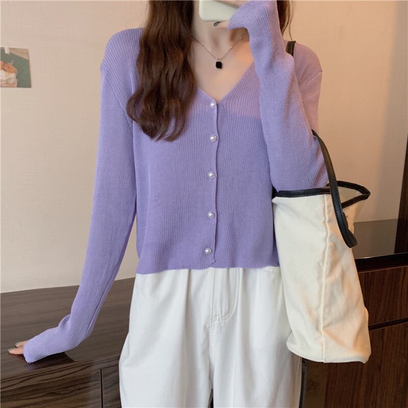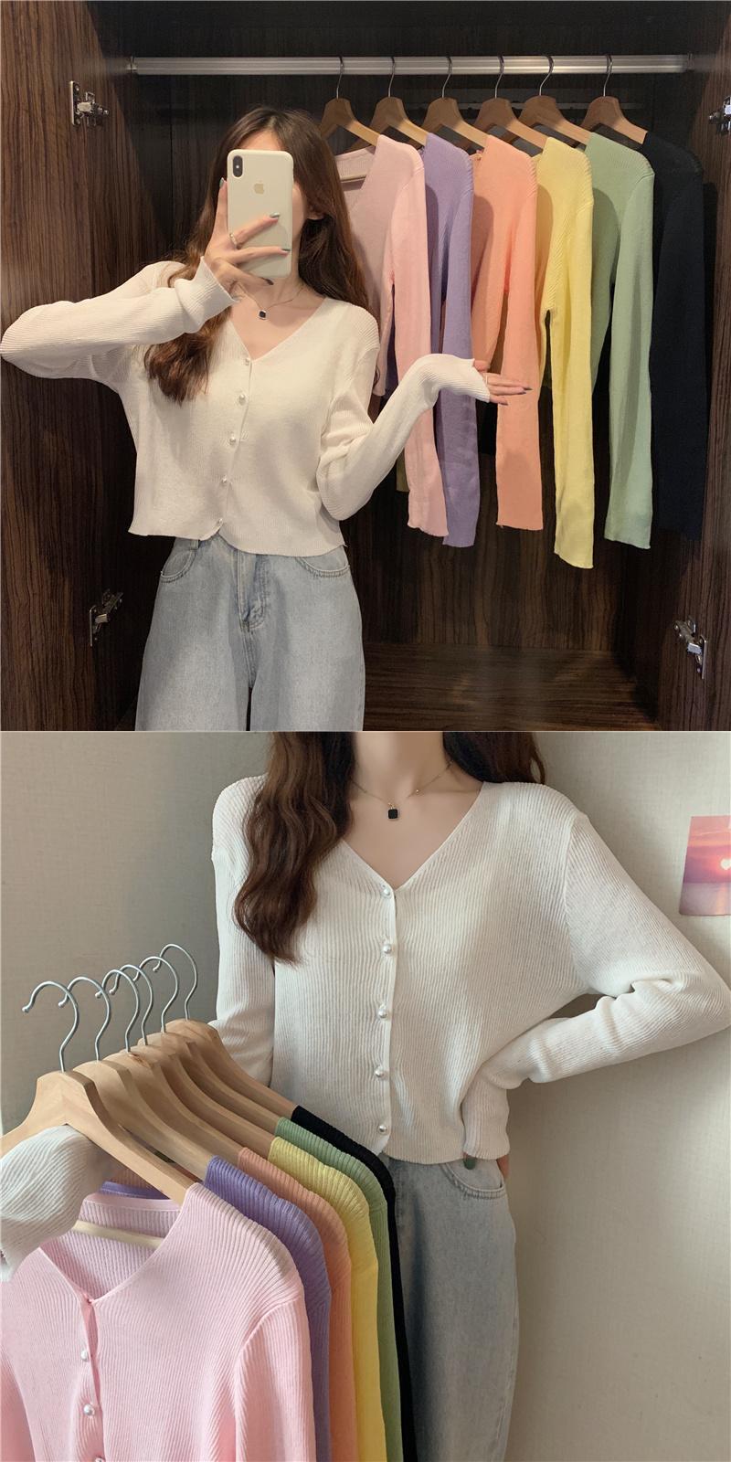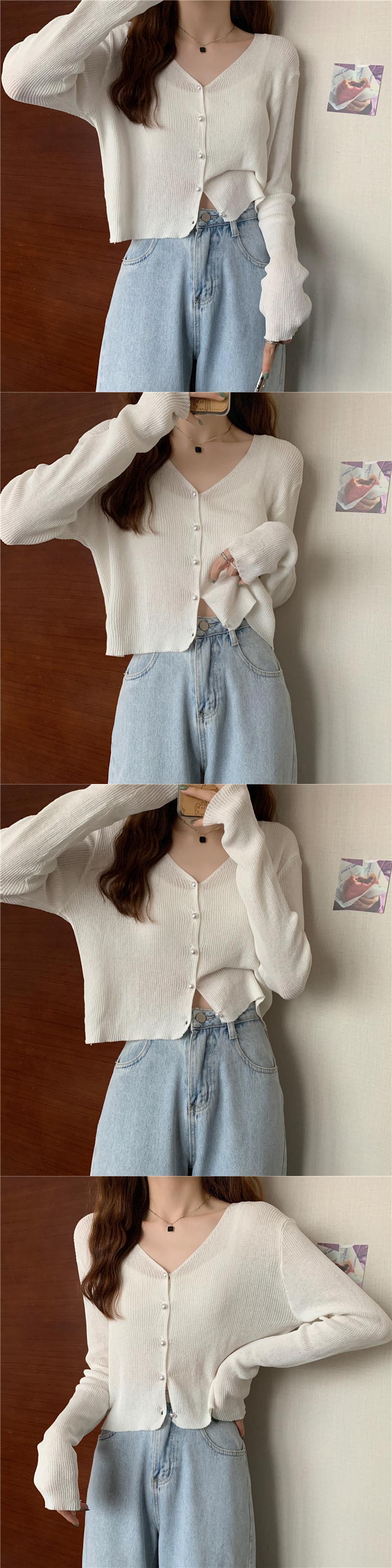 ホワイトニットカーディガン夏服Vネックショートスタイルシャツ パール薄手ハイウェストウェストトップス 夏物 真珠 ウエスト コーデ Marchs48568424129