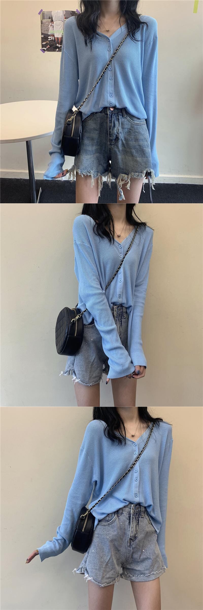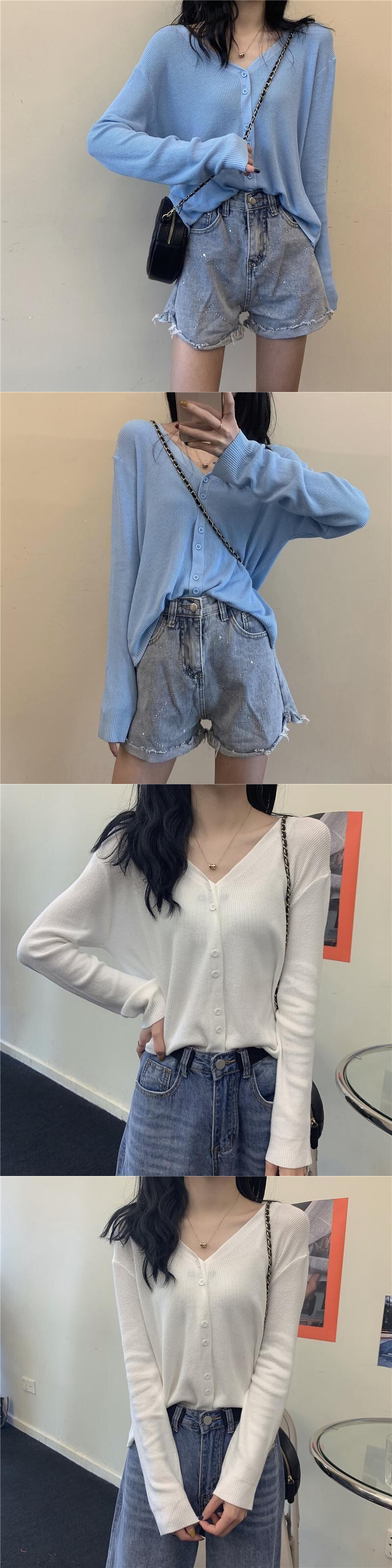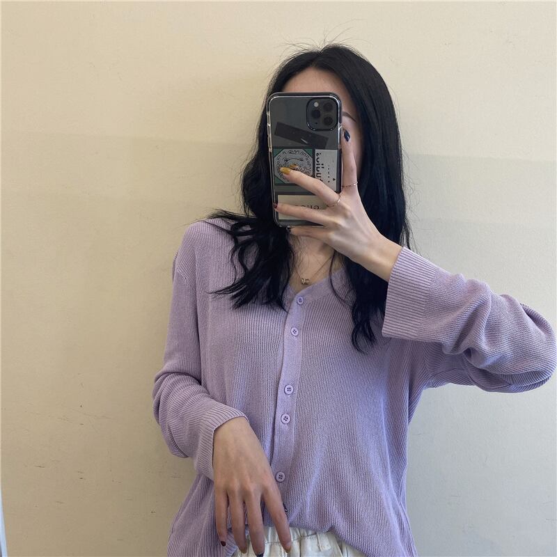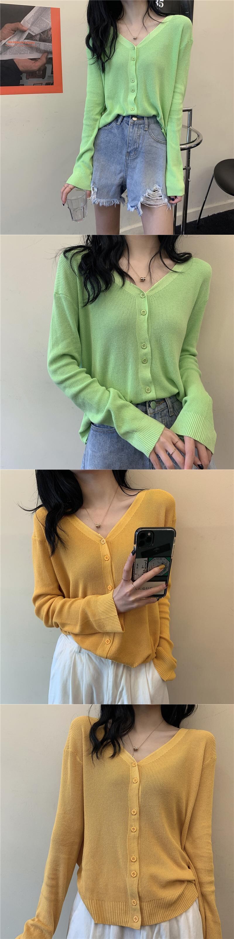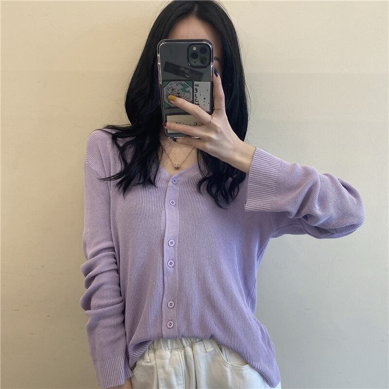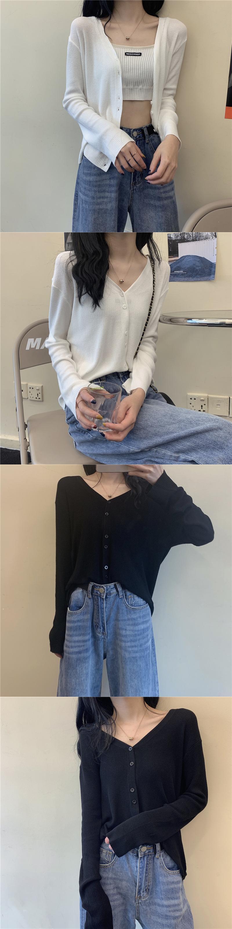 薄手シャツ 夏服スタイルブラックVネックニットカーディガン ロング 夏物 シルク 長袖 コーデ Marchs34734335615