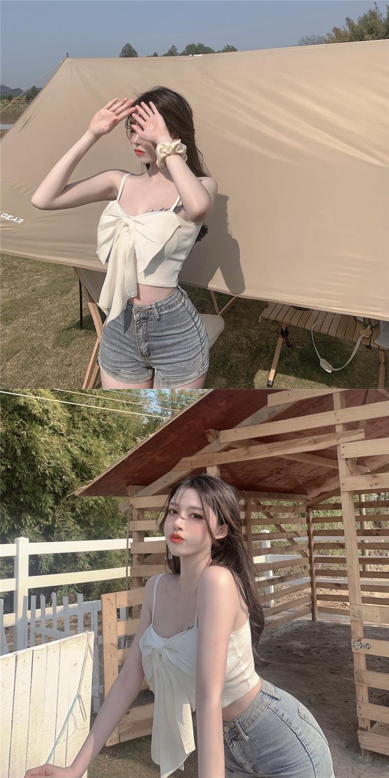 ホワイトリボンスプリングショートスタイルバックトップス 春物 ピュア コーデ Marchs45287653325