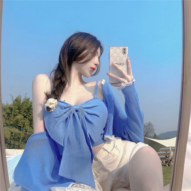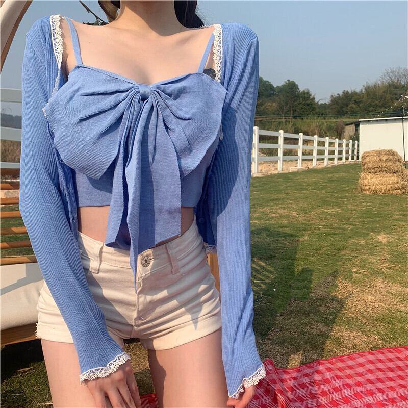 色:ホワイトサスペンダー,青いスリング,白いカーディガン,ブルーカーディガン