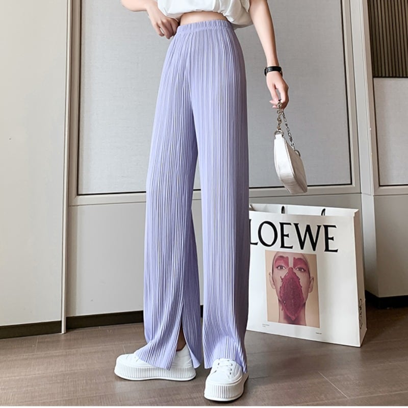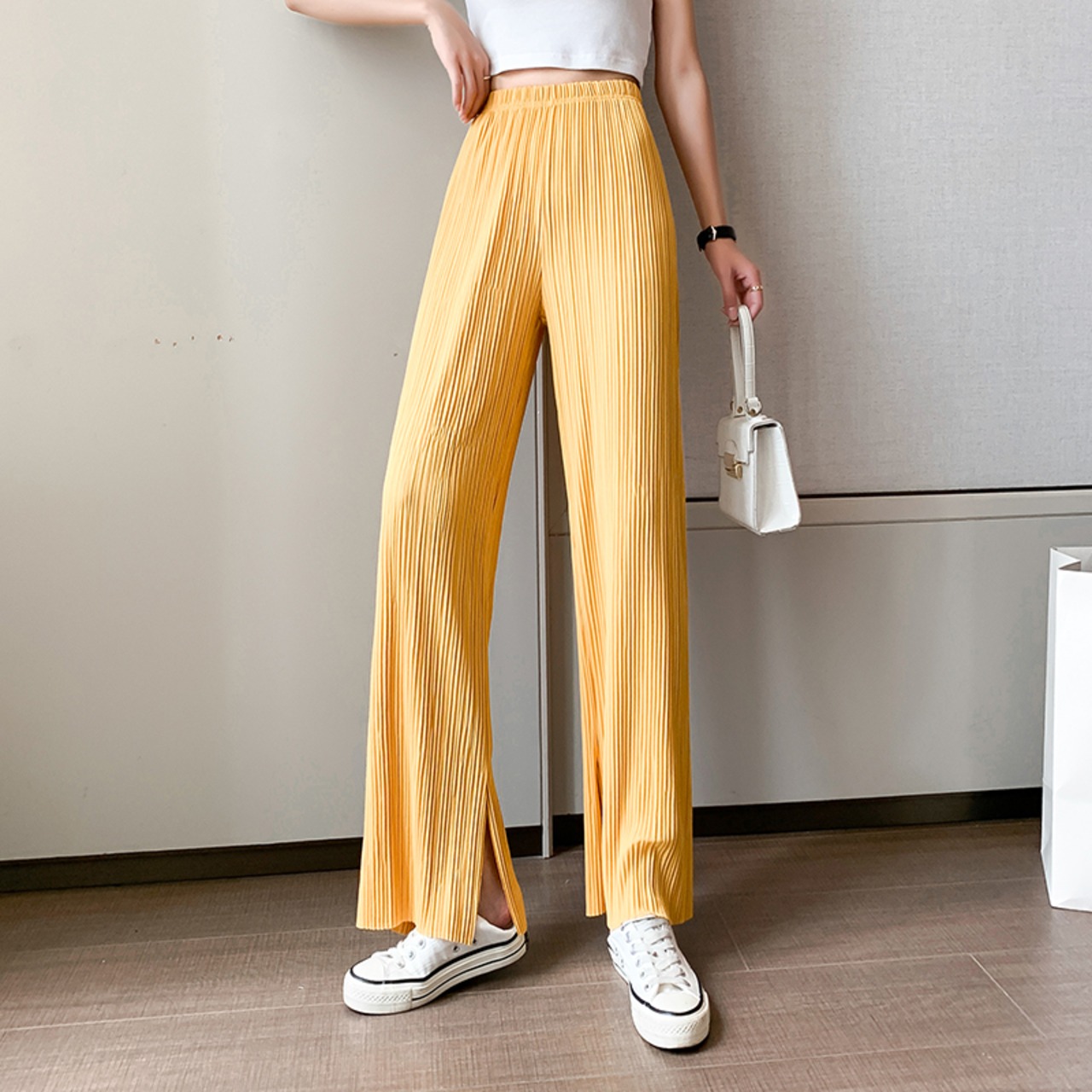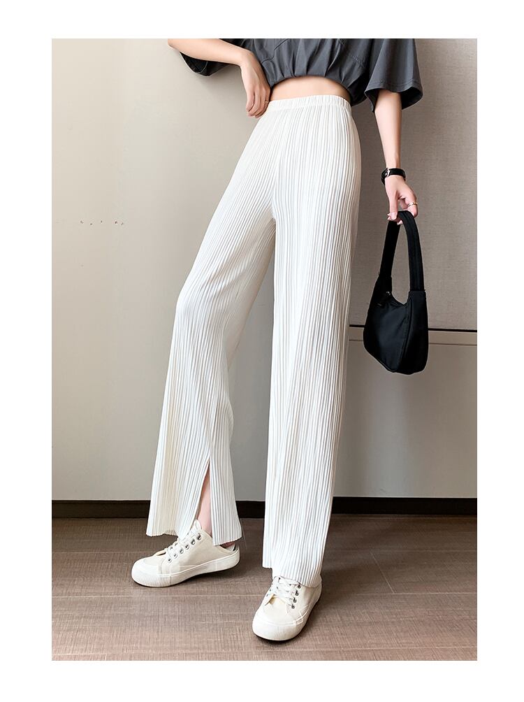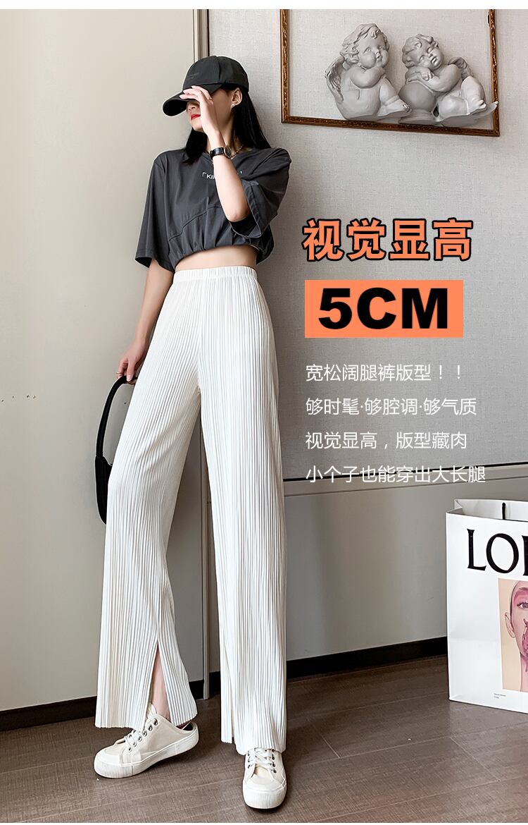 スリットパンツ 夏服薄手プリーツベージュハイウェストウェスト 夏物 シルク ウエスト コーデ Marchs27854263283