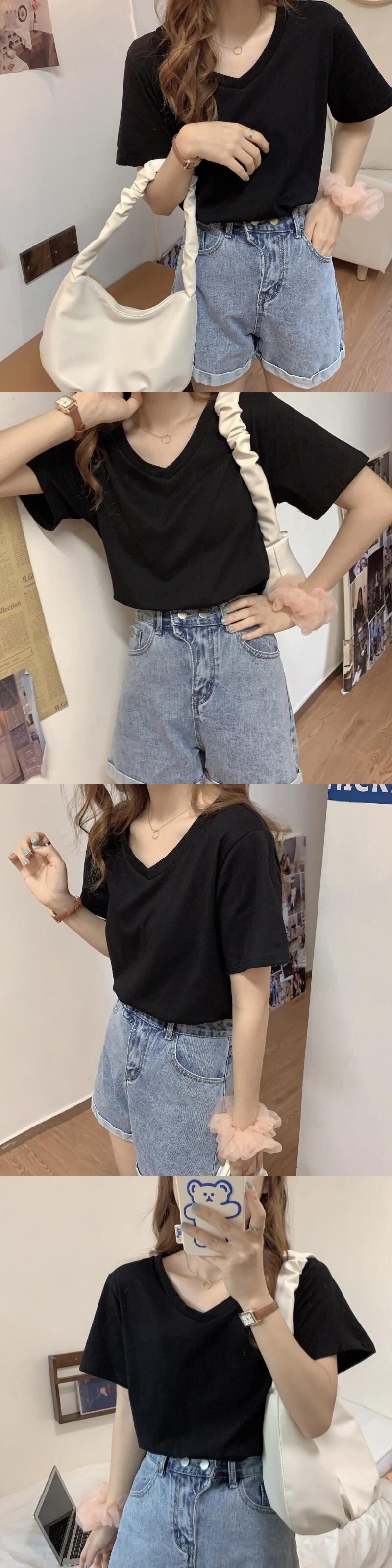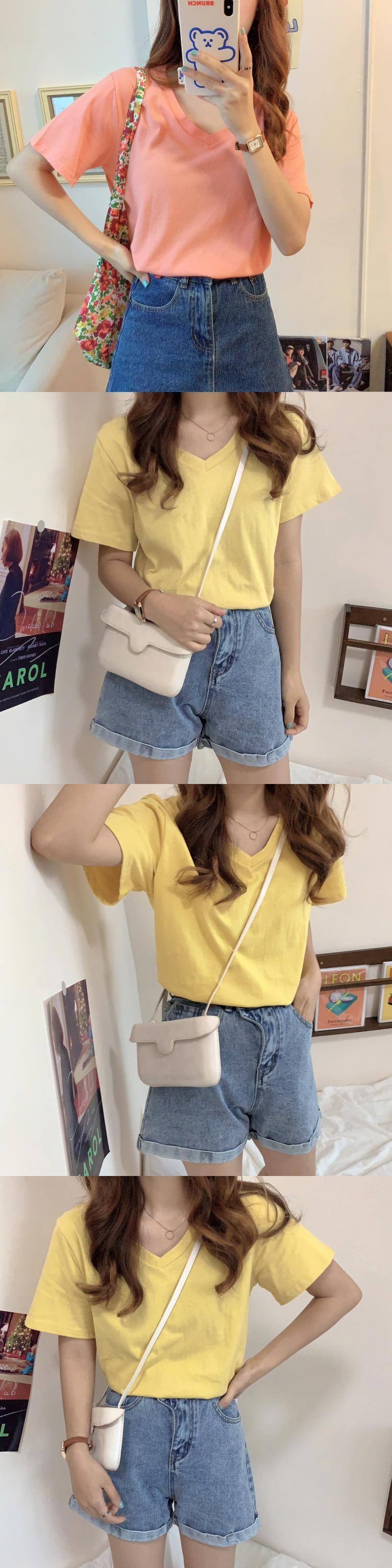ソリッド カラールーズVネックTシャツ夏服薄手スタイルトップス 大人ガーリー スウィート キュート カジュアル 夏物 ソリッドカラー コーデ Marchs76711765895