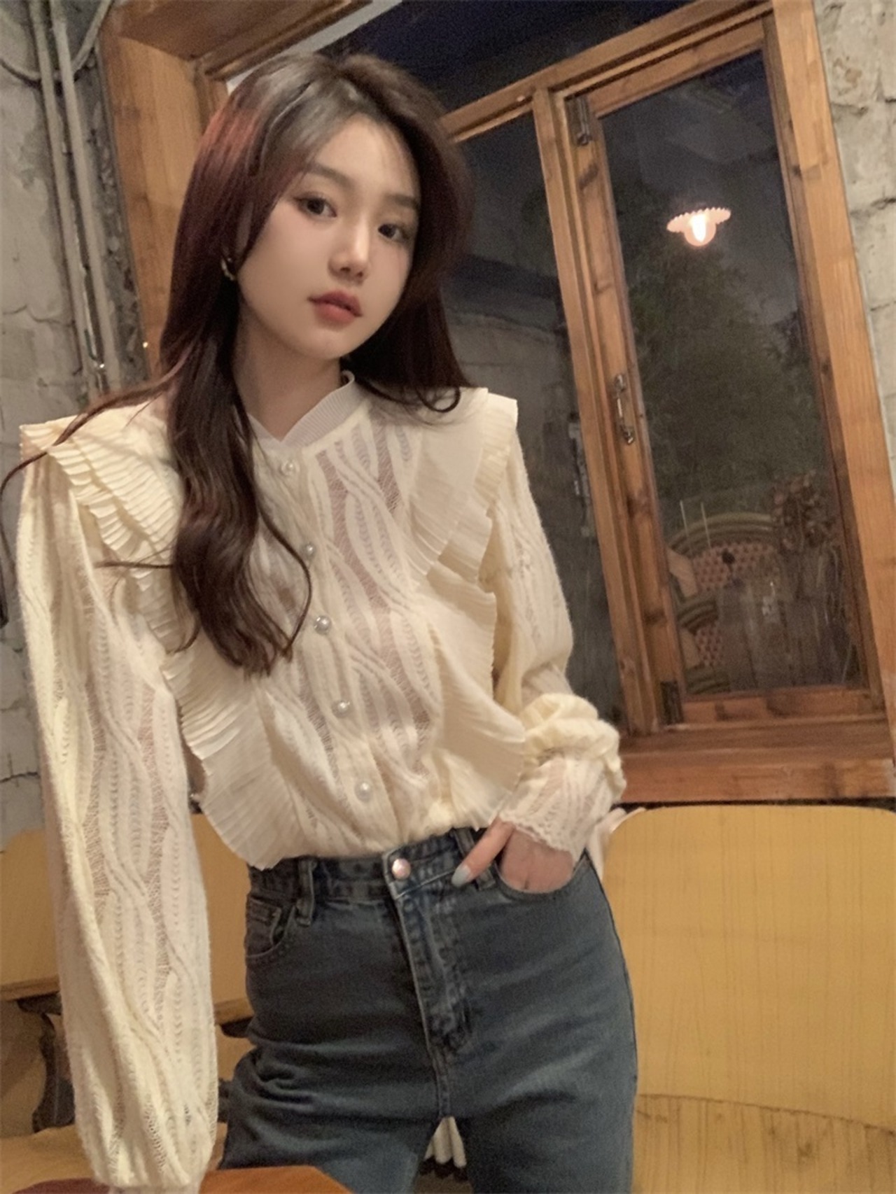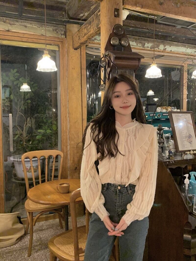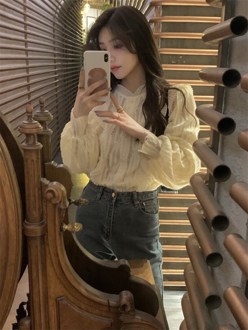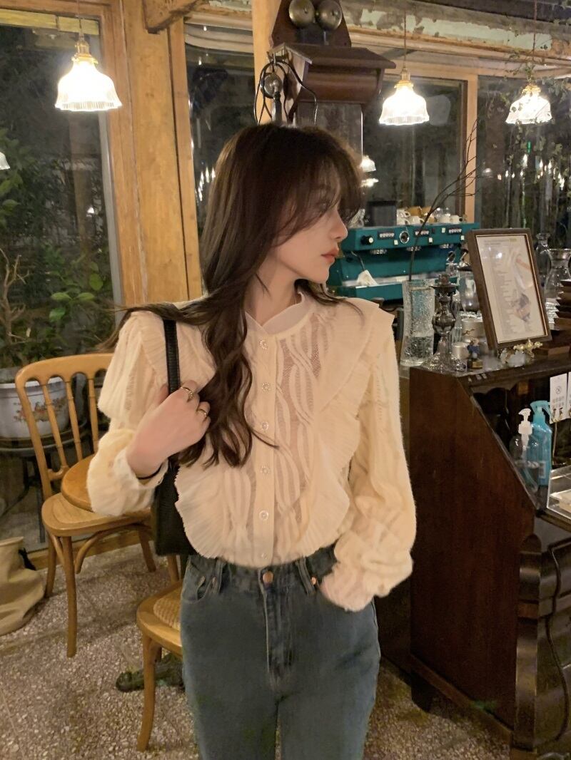 レースシャツ スプリング秋物スタイルゆったり韓国ファッショントップス 大人ガーリー スウィート キュート カジュアル 春物 オータム コーデ Marchs24304274666