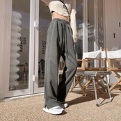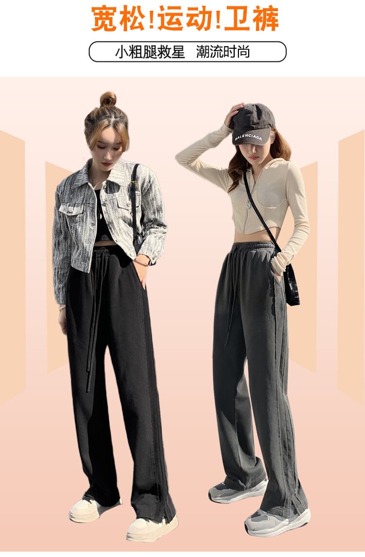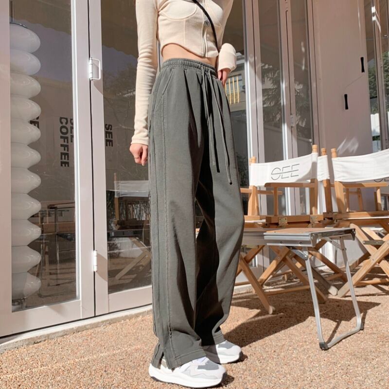 サイドスリットパンツ 夏服ハイウェストウェストルーズワイドレッグカジュアル 夏物 ワイドパンツ ウエスト コーデ Marchs5554852501