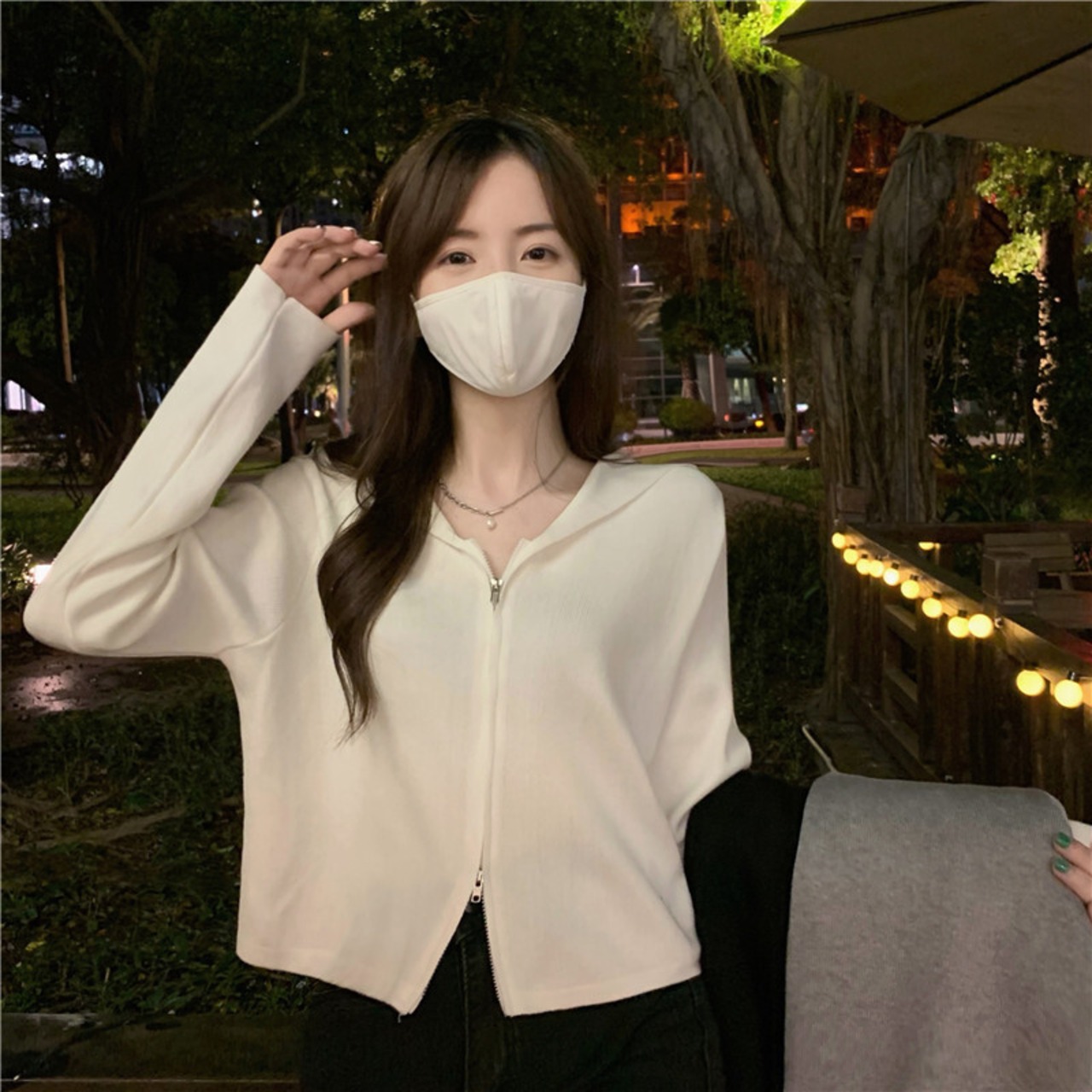 ダブルジッパーフードニットカーディガンジャケット 夏服スタイルショートトップス 大人ガーリー スウィート キュート カジュアル 夏物 コーデ Marchs59372205707