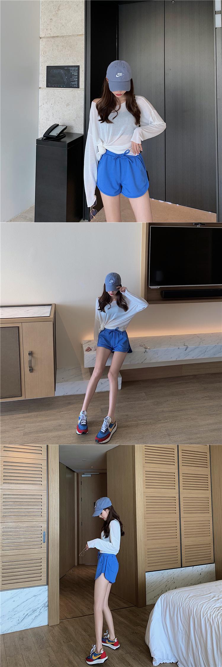 ブルーカジュアルショーツ スプリング夏服パンツ ハイウェストウェストストレッチ エラスティック 伸縮 春物 夏物 ウエスト コーデ Marchs54205869008