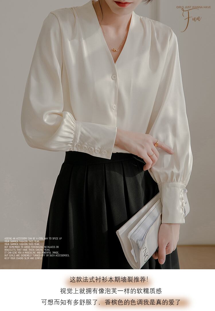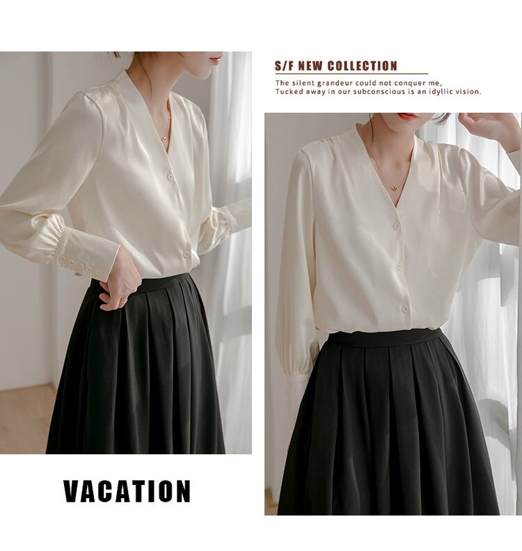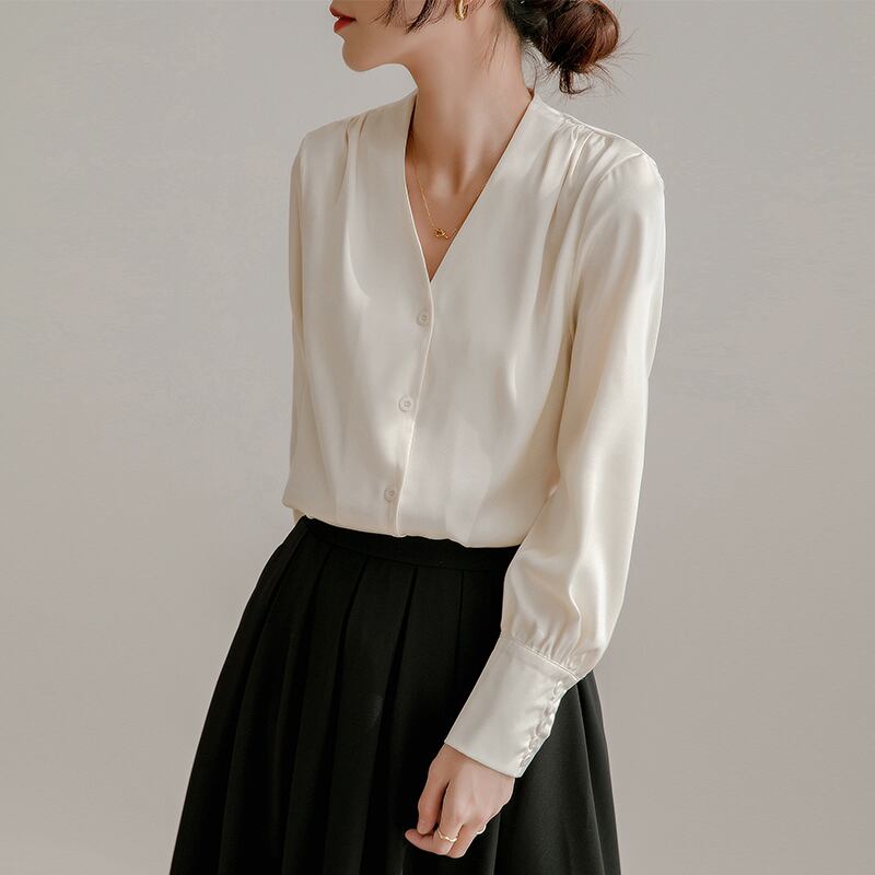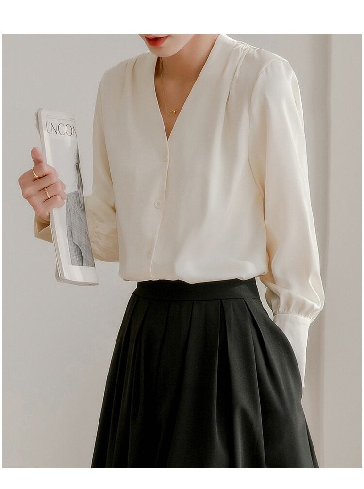 サテンホワイトVネックシャツ コーデ Marchs33196429261