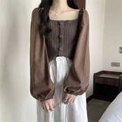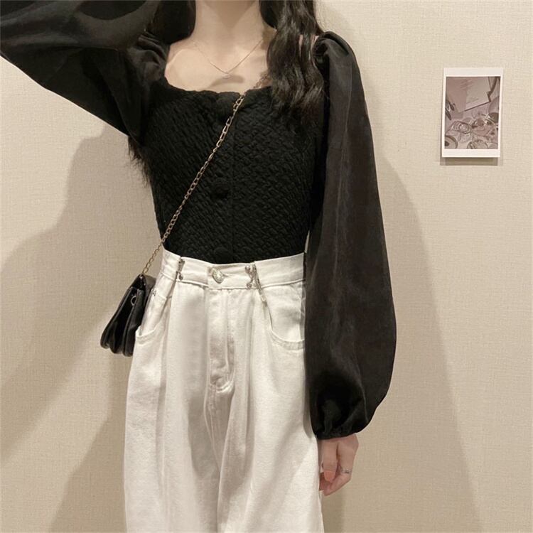 ニットセーター スタイル夏服ゆったりシャツ ロング 夏物 スクウェア 長袖 コーデ Marchs92910490471
