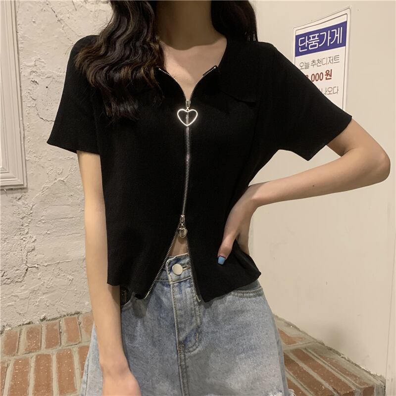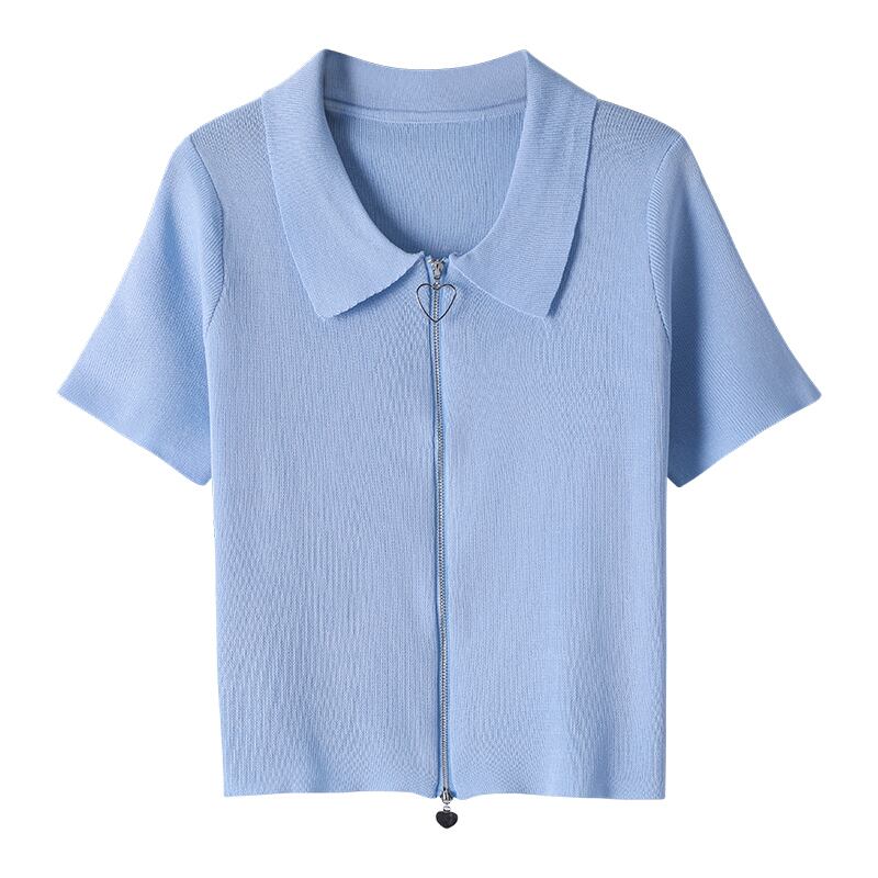 ジッパーカラーニットショートスタイルルーズTシャツトップス ハイウェストウェストパンツ シルク ウエスト コーデ Marchs8810315034