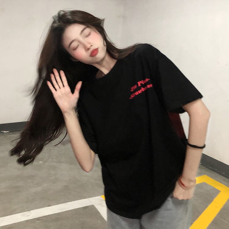 ブラックTシャツスプリング夏服韓国ファッションルーズカジュアルトップス NEW 春物 夏物 スタイル コーデ Marchs6411889993