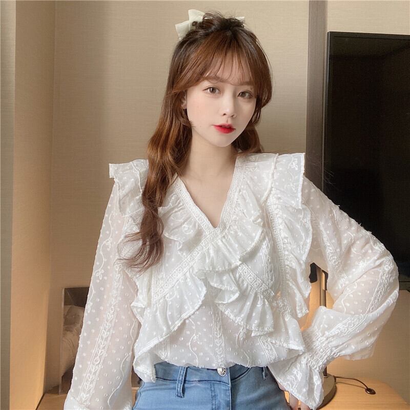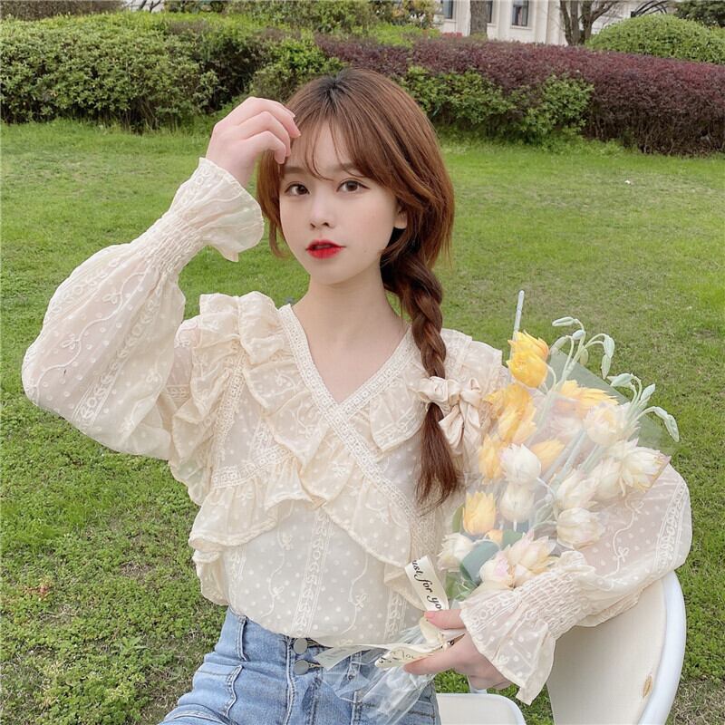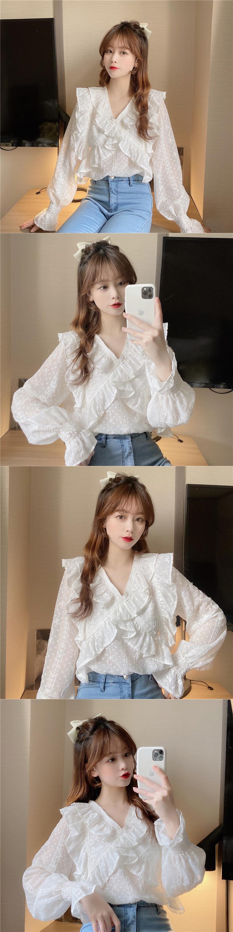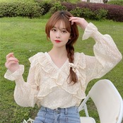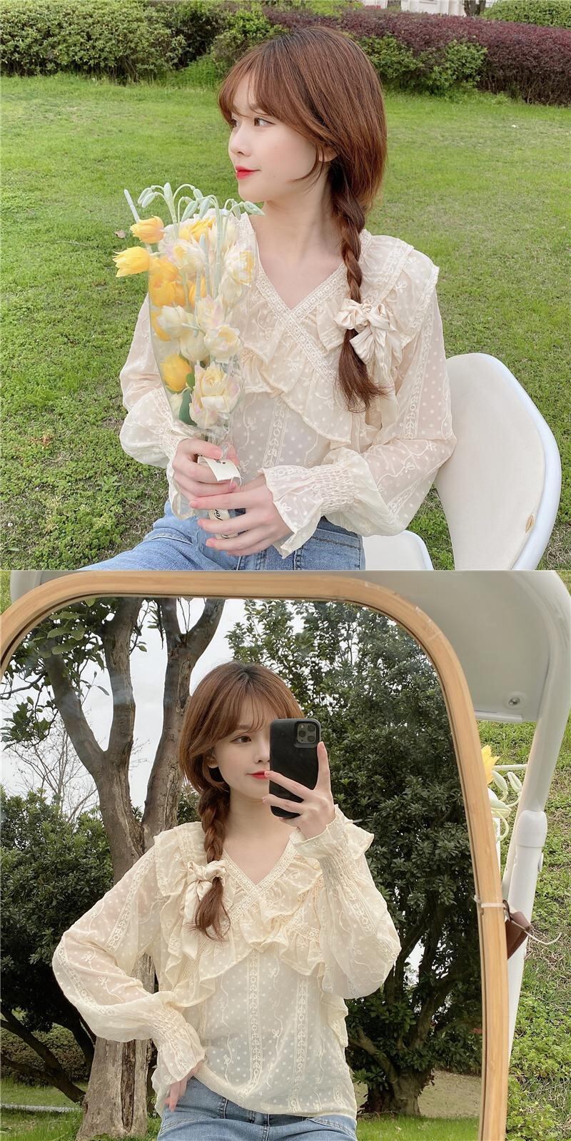 スプリングシフォンシャツ スタイル薄手レーストップス 春物 コーデ Marchs13393483569