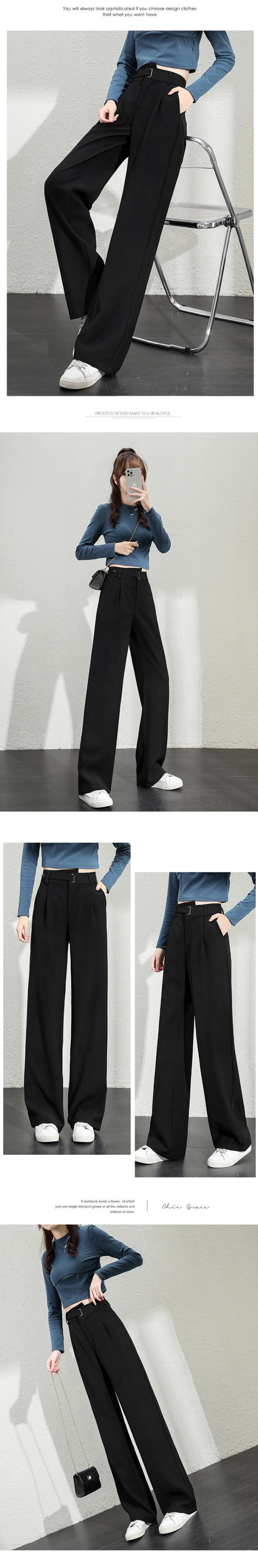 ブラックパンツ 夏服ハイウェストルーズ 夏物 ウエスト コーデ Marchs9296042368