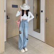 ジーンズ 夏服ハイウェストパンツ レッド 夏物 ウエスト コーデ Marchs31782651395