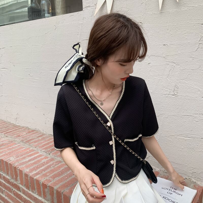 ショートシャツ 夏服スタイルVネック 夏物 コーデ Marchs90755675192