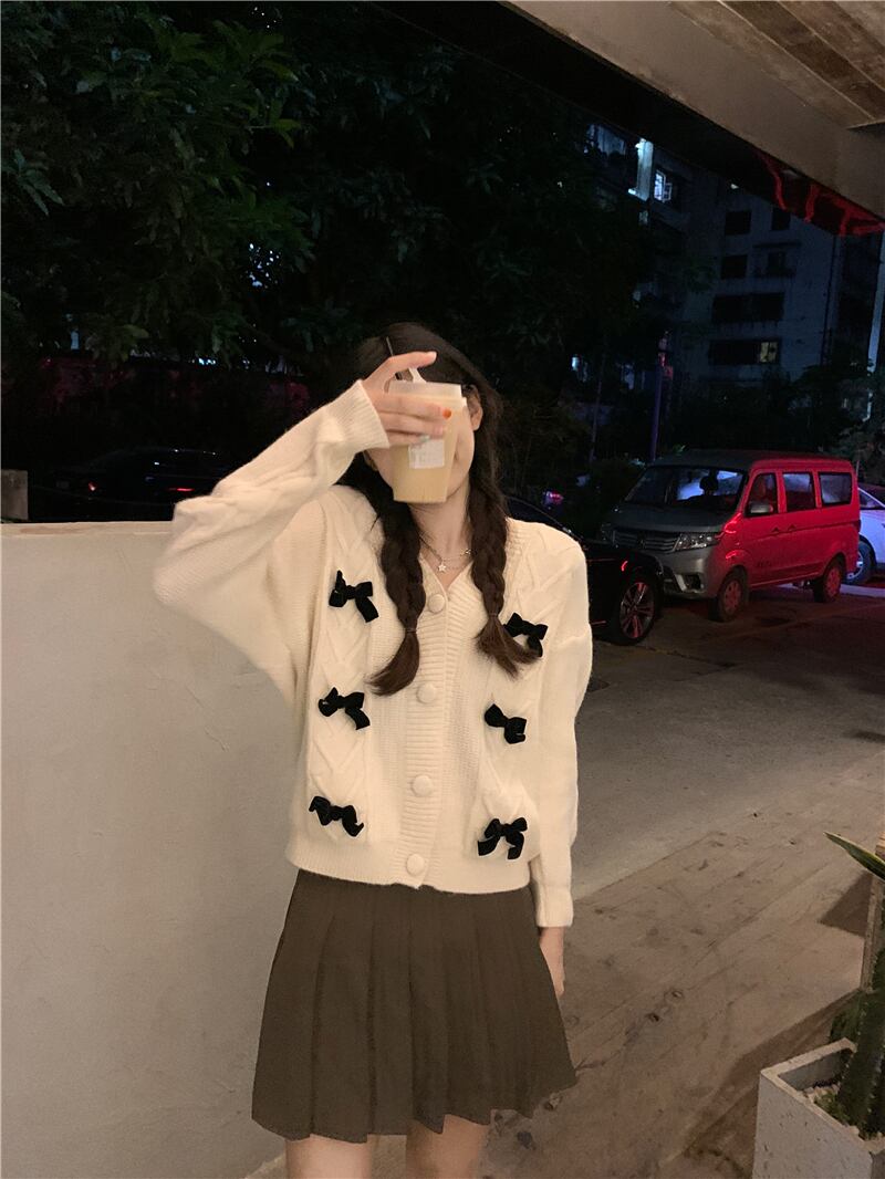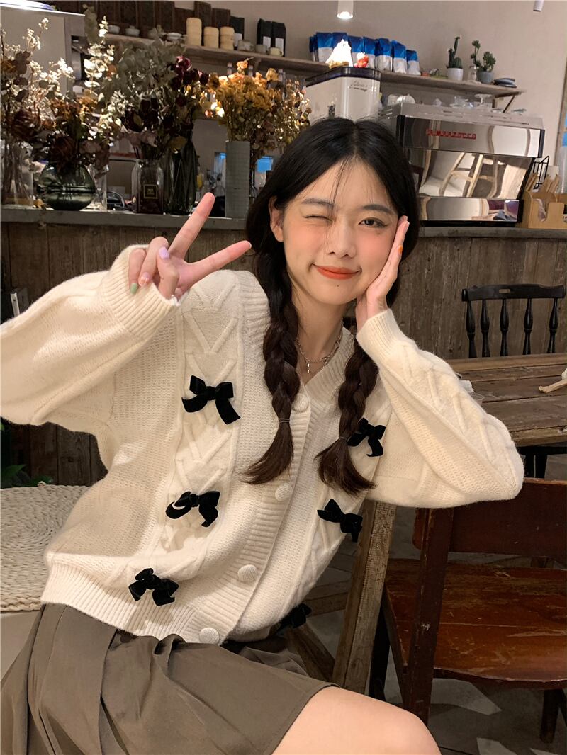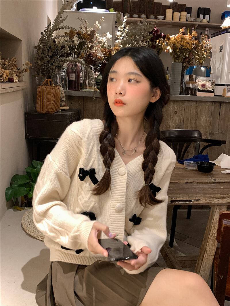 韓国ファッションスタンダードVネックニットカーディガンショートセーター ウィンター レトロ 大人ガーリー スウィート キュート カジュアル 冬物 コーデ Marchs36819873724