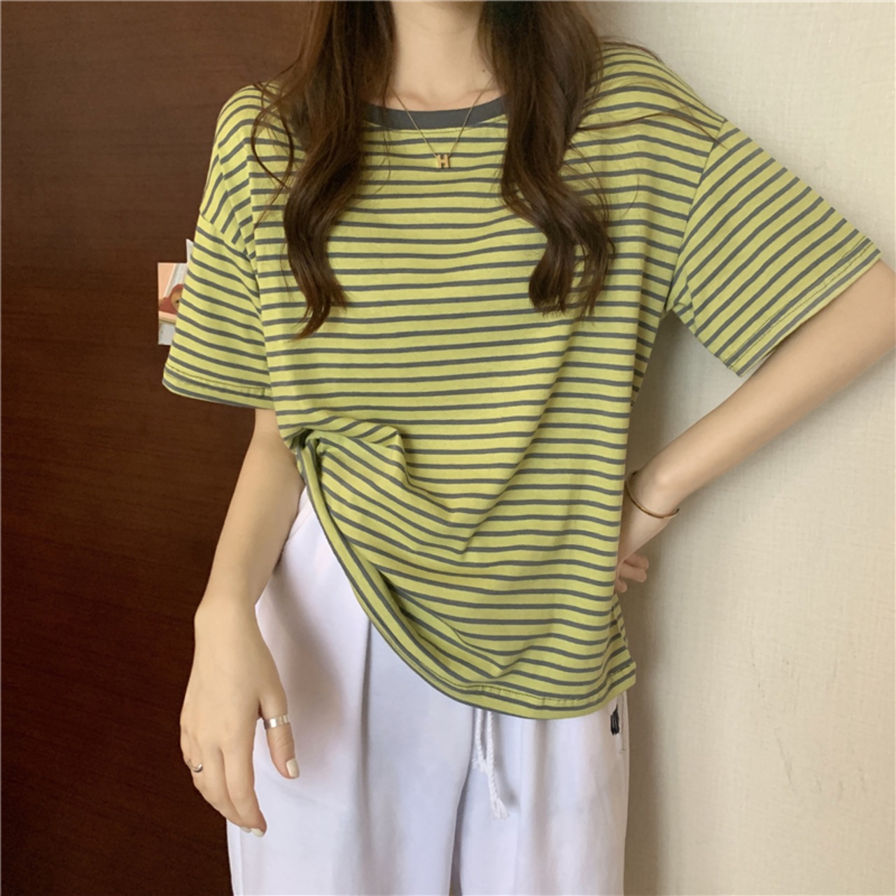 ストライプTシャツ夏服ルーズ薄手ゆったりトップス 夏物 コーデ Marchs58590959558
