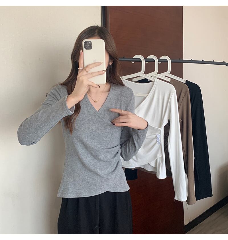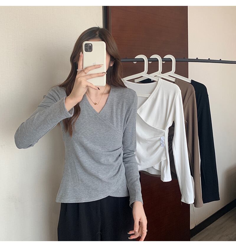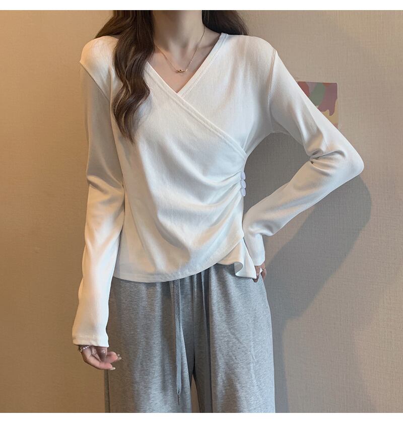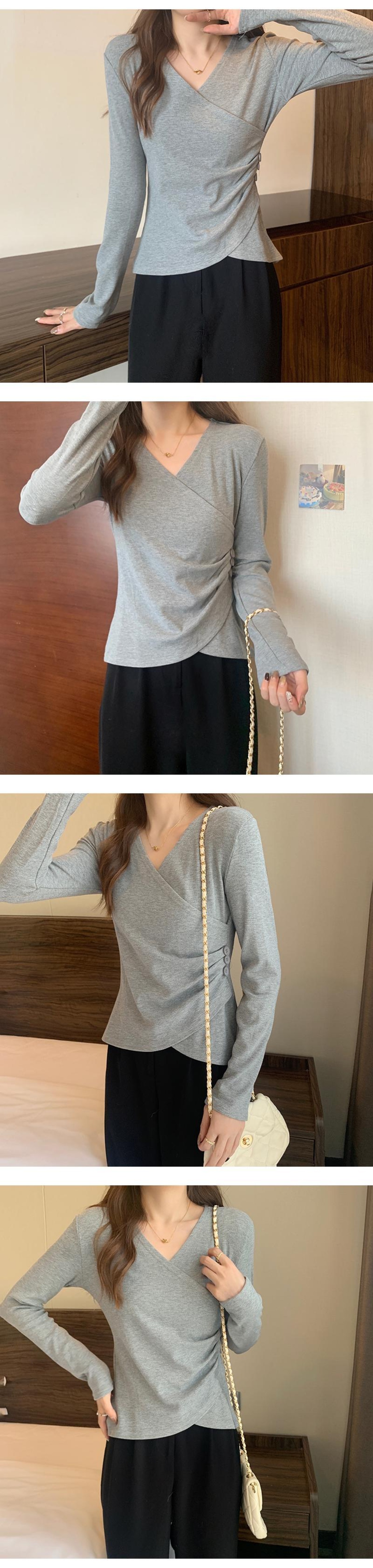 クロスVネックウェストゆったりシャツ Tシャツスプリング秋物スリムトップス ロング 春物 オータム 長袖 ウエスト コーデ Marchs98419018689