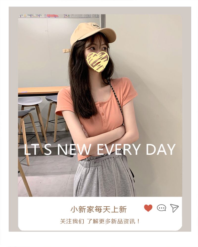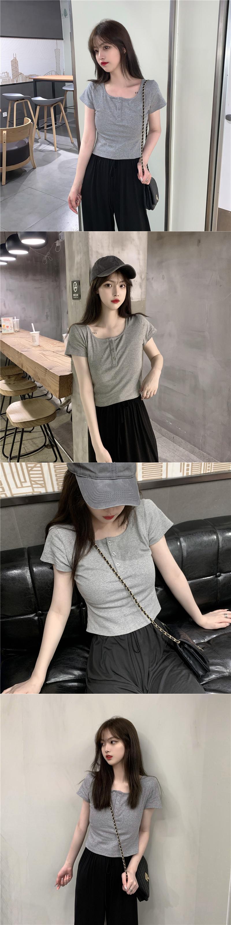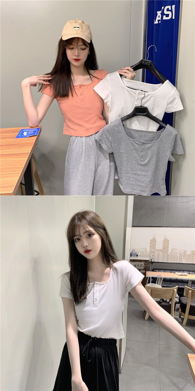 ボタンTシャツ夏服ショートハイウェストクロップドトップス 大人ガーリー スウィート キュート カジュアル 夏物 スクウェア ウエスト コーデ Marchs92570603407