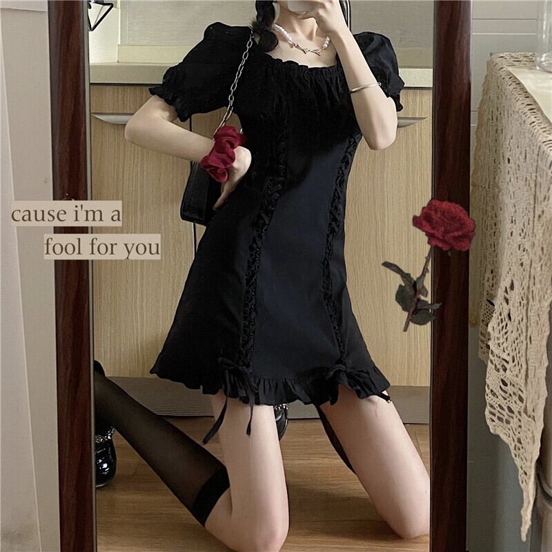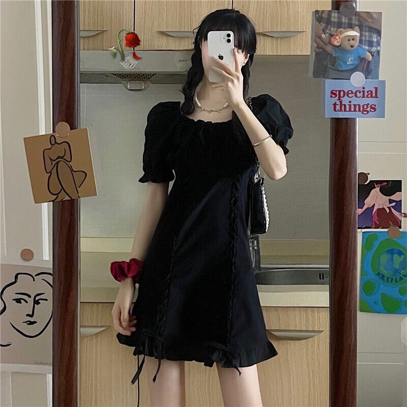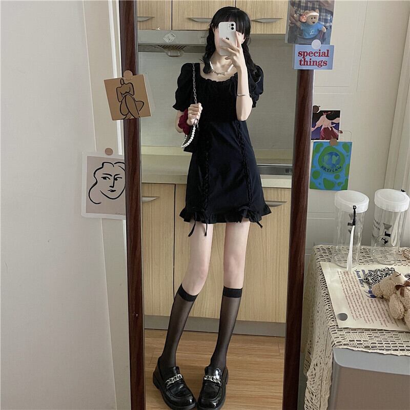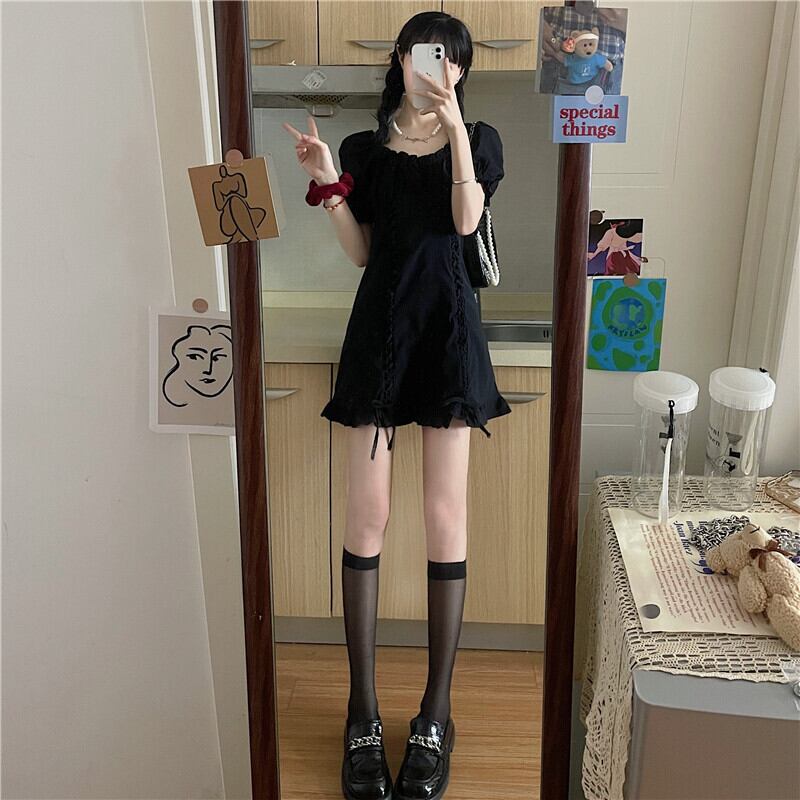 夏服ハイウェストウェストワンピース薄手ショートスカート 韓国ファッションブラック 大人ガーリー スウィート キュート カジュアル 夏物 スタイル ウエスト コーデ Marchs25943472241