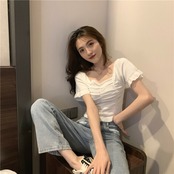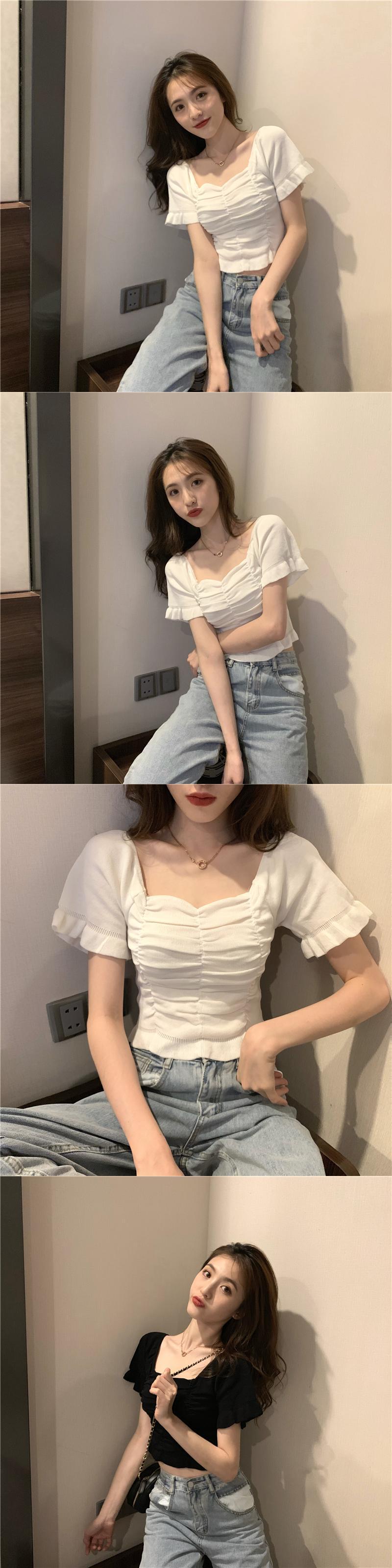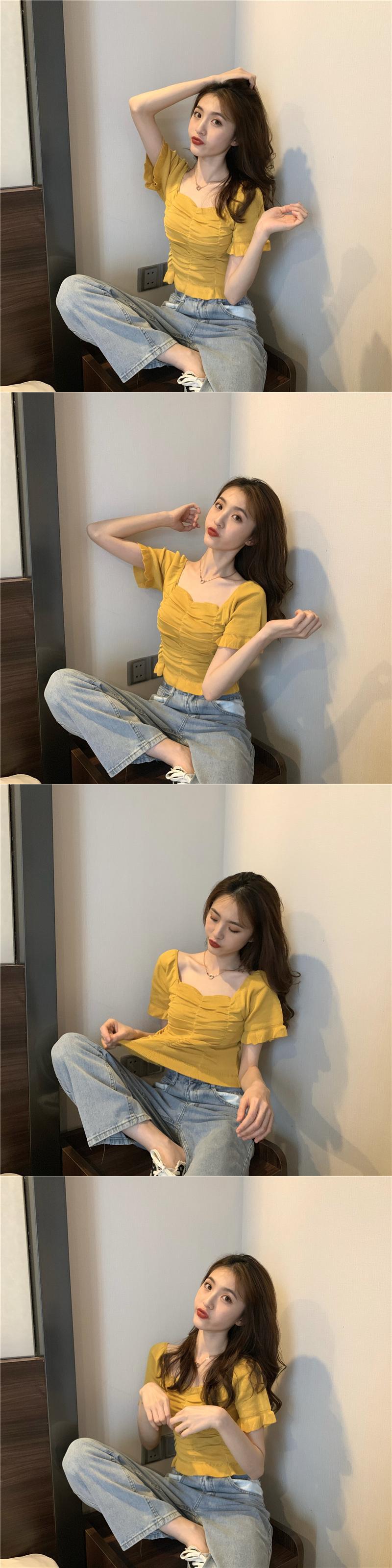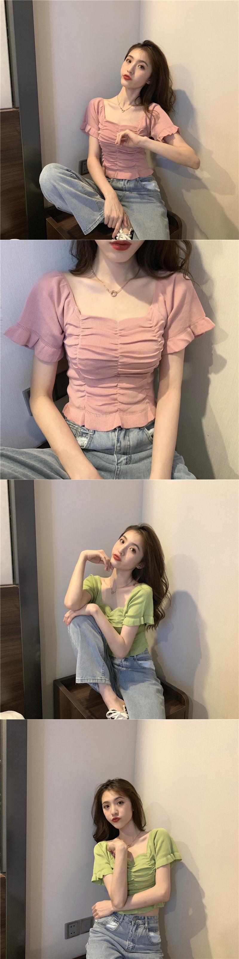 カラーショートトップス スプリングシャツ 大人ガーリー スウィート キュート カジュアル 春物 スクウェア コーデ Marchs59641968451