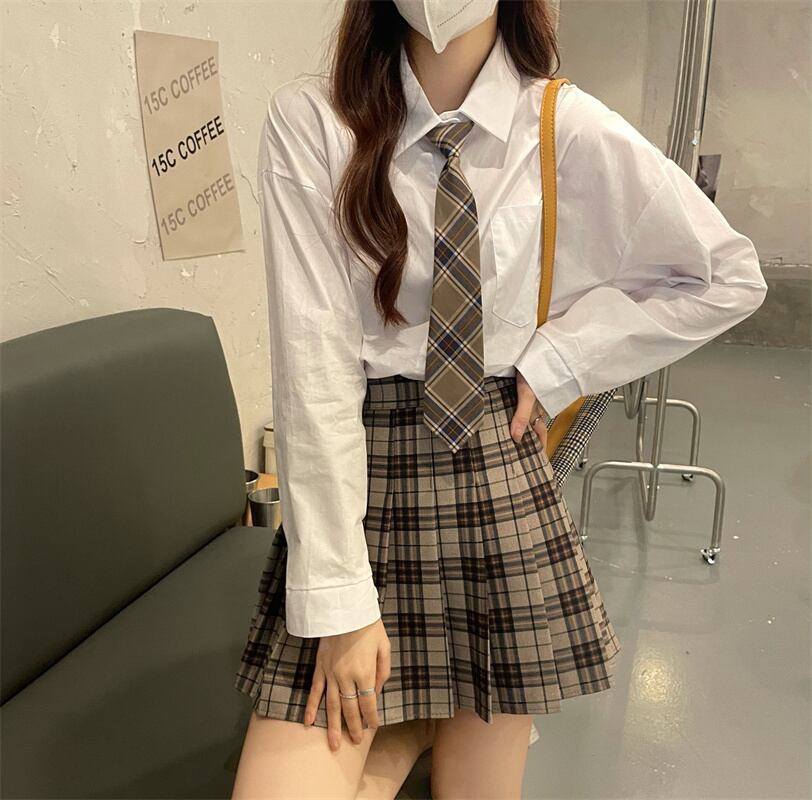 色:白いブラウスと黒いネクタイ,白いブラウスチェック柄ネクタイ