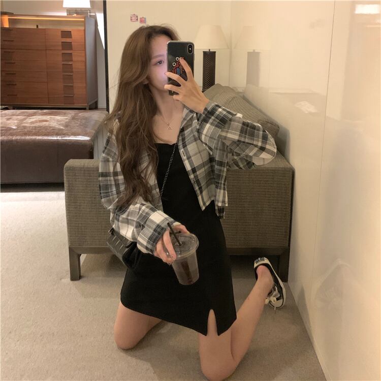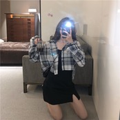 格子柄シャツ トップス スプリング薄手ショートブラウス ジャケット 春物 コーデ Marchs67246348762