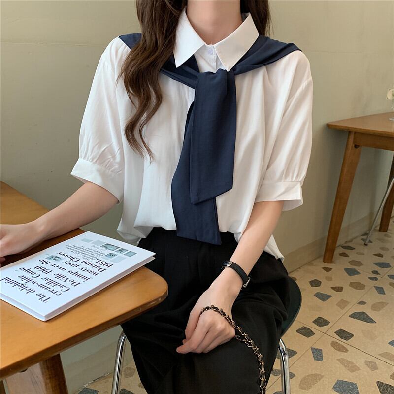 夏服ルーズスリーブシャツ トップス スタンダードショールパフスリーブ レトロ 夏物 コーデ Marchs82630319893