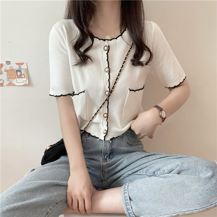 夏服薄手ニットショートTシャツNEWルーズトップス 夏物 シルク コーデ Marchs84451472771