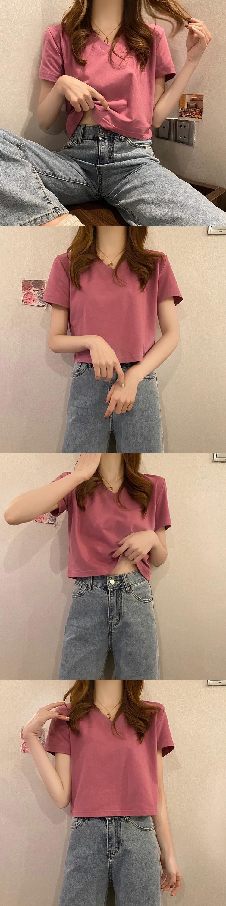 Tシャツショート夏服ルーズスタイルスリムVネックトップス 夏物 コーデ Marchs78846168433