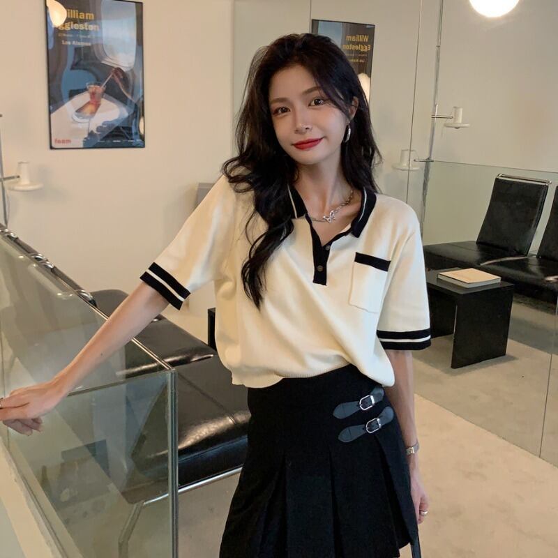 カラー夏服ルーズニットTシャツ薄手ゆったりトップス 大人ガーリー スウィート キュート カジュアル 夏物 コーデ Marchs22651269441