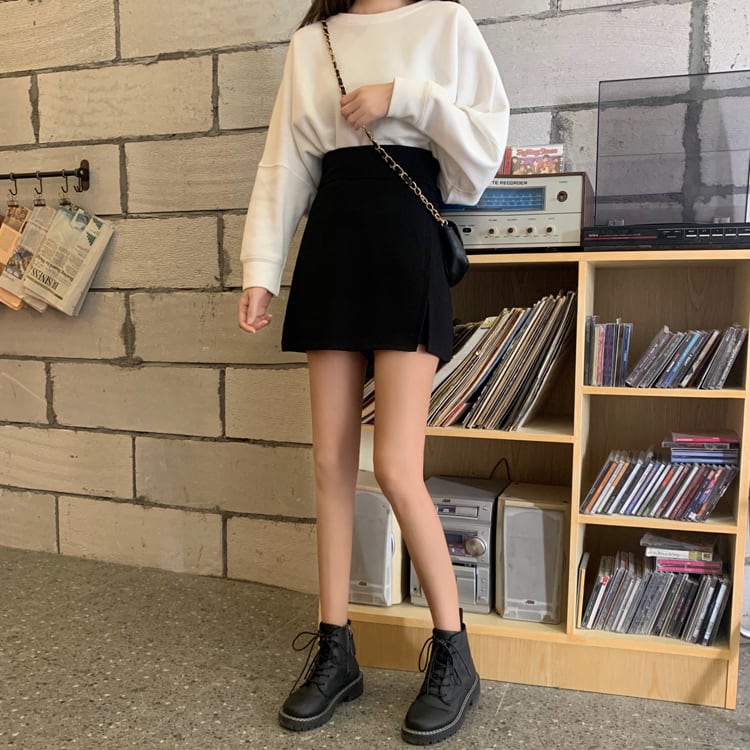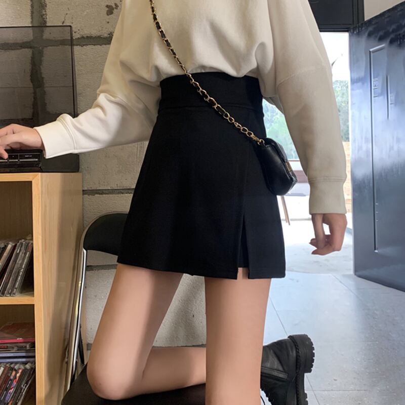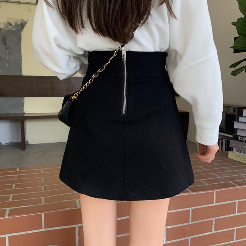 Aラインスカート スプリング夏服スリットハイウェストウェストショートブラック 春物 夏物 ウエスト コーデ Marchs58576288071