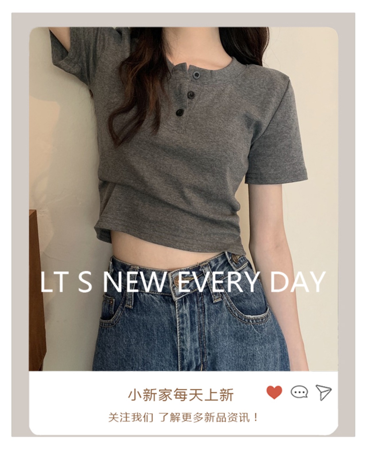 ウェストショートトップス NEWスリムグレーTシャツ夏服 大人ガーリー スウィート キュート カジュアル 夏物 ウエスト コーデ Marchs81181662525