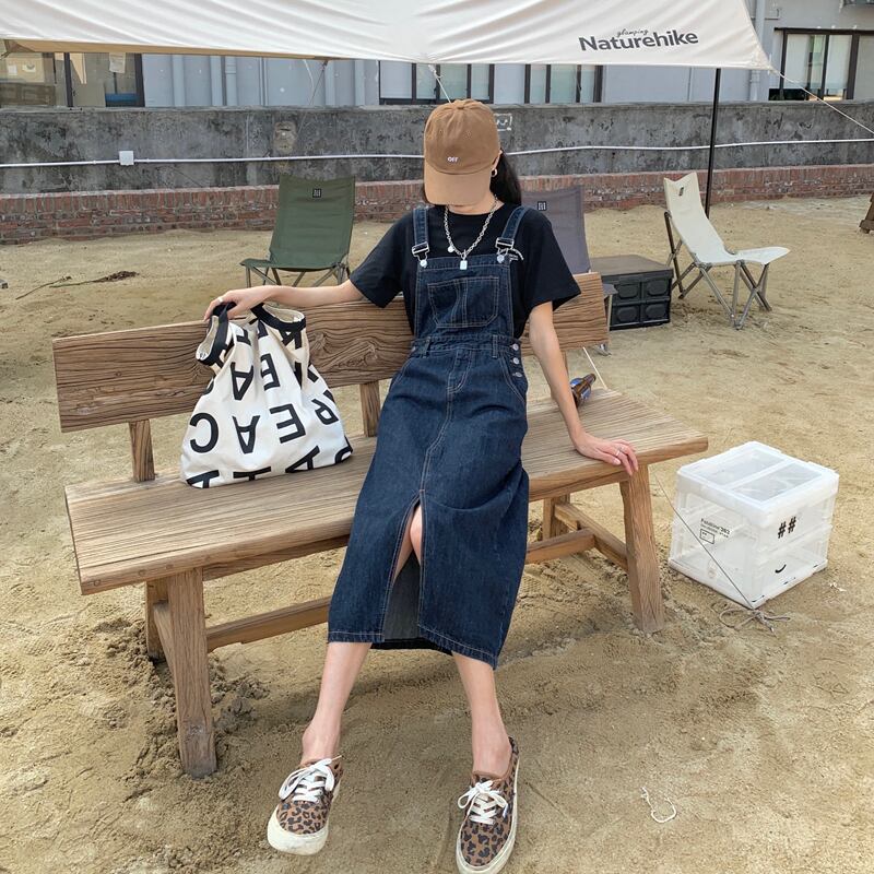 ブルースリットワンピーススプリング秋物ハイウェストスカート ルーズ 春物 オータム ウエスト コーデ Marchs91132876894