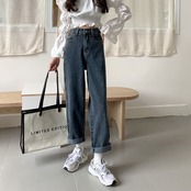 ダークブルージーンズ 夏服ルーズパンツ ハイウェスト 夏物 ウエスト コーデ Marchs77652764130