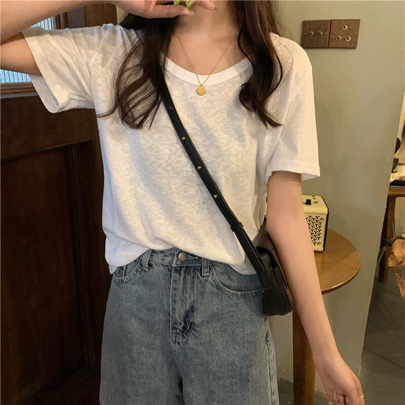 夏服薄手ラウンドネックベーシックTシャツシャツ ルーズゆったりトップス 夏物 Oネック コーデ Marchs1206639614