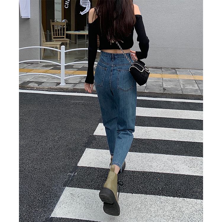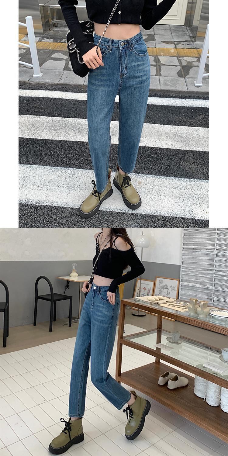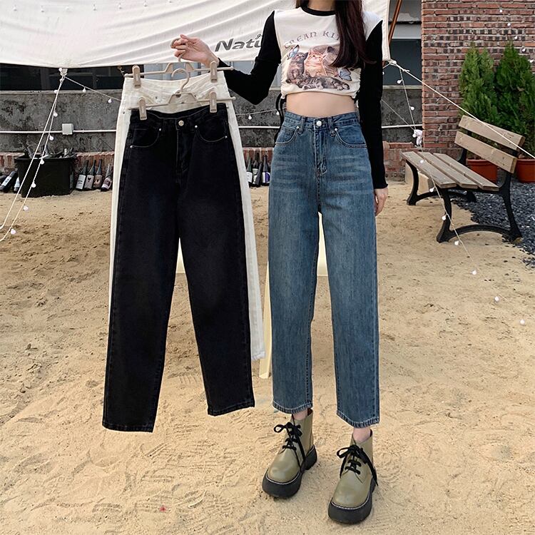 ハイウェストジーンズ 夏服韓国ファッション薄手ルーズパンツ 夏物 スタイル ウエスト コーデ Marchs92723561514