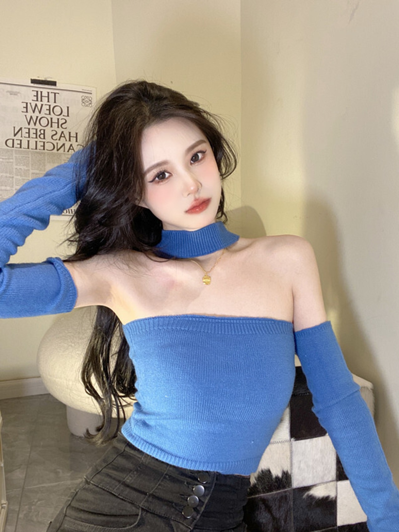 ショートホルタートップス 夏服ニットゆったりシャツ 夏物 コーデ Marchs61782777364