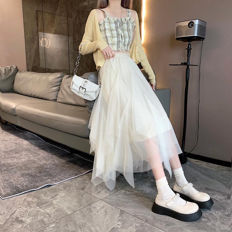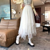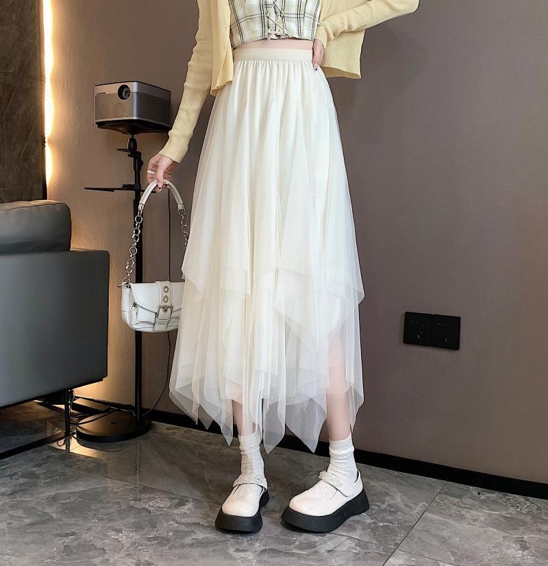 メッシュスカート ハイウェストウェストAラインスプリング 春物 パニエ ペチコート ウエスト ミドル丈 コーデ Marchs13037875547