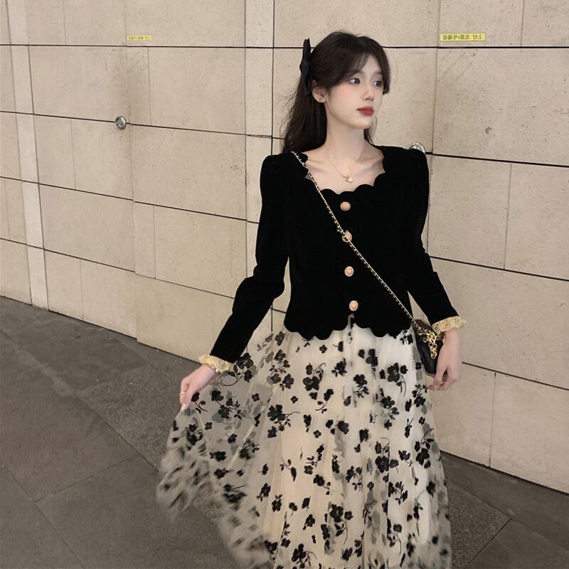 秋物スタイルゆったりフローラルワンピースレディーススプリング ロング 春物 オータム 花柄 長袖 コーデ Marchs91055114830