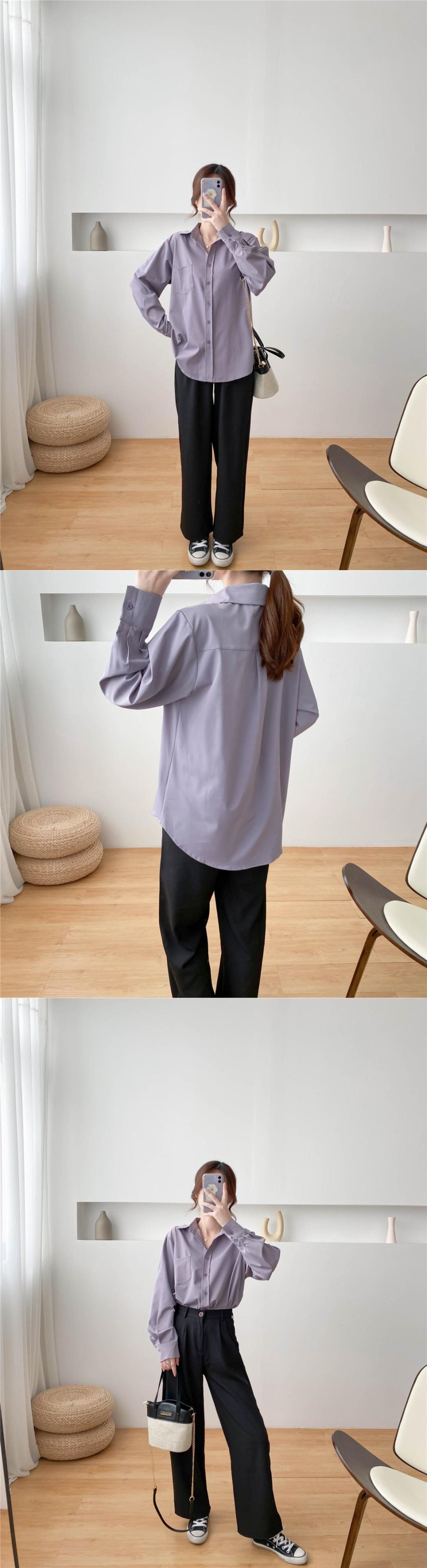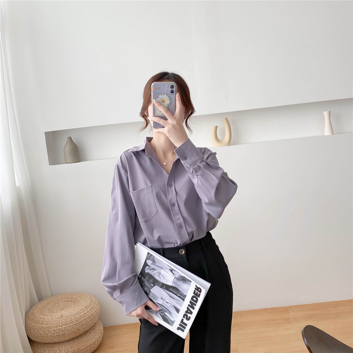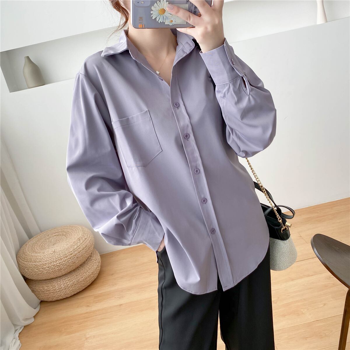 シャツ スプリングスタンダード ロング レトロ 春物 パープル 長袖 コーデ Marchs29666293