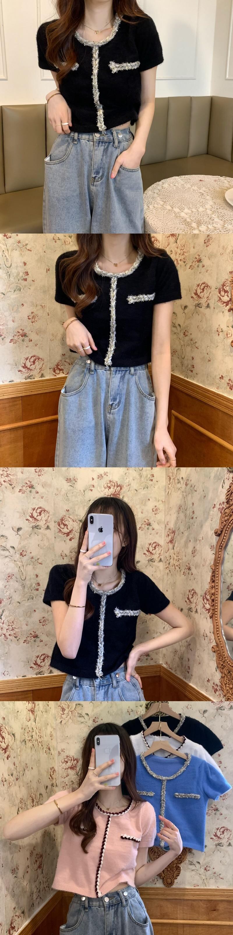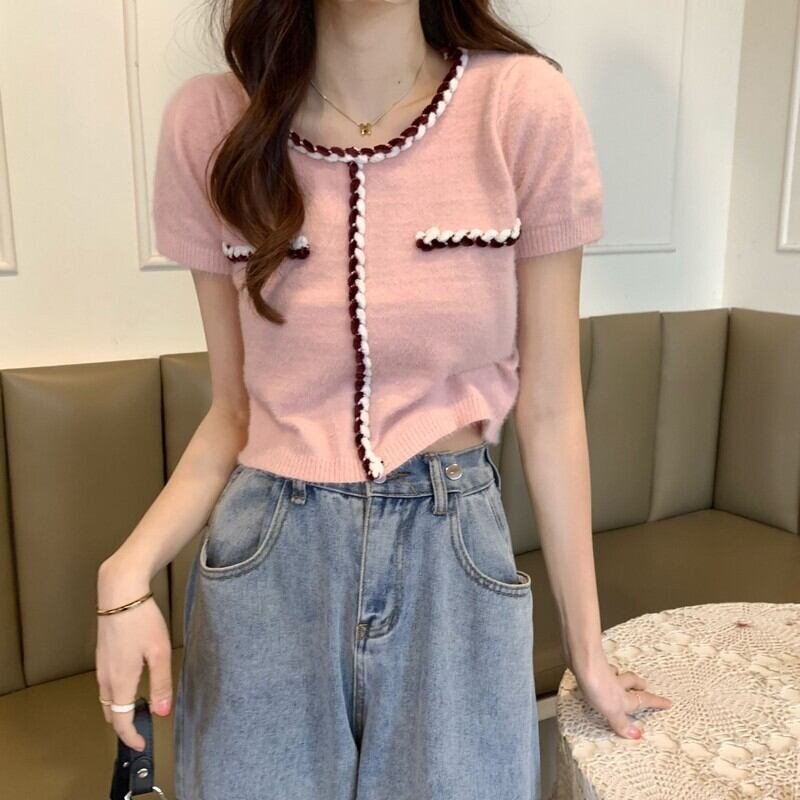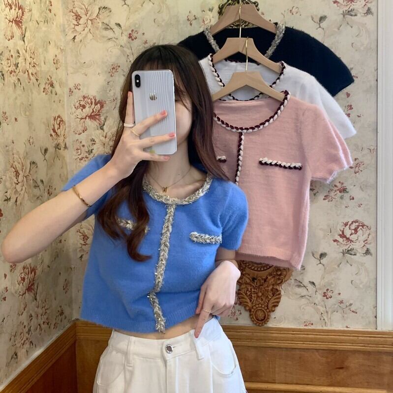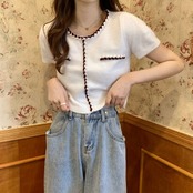 ニットショートトップス レディース夏服ワンピースTシャツNEW 夏物 コーデ Marchs38832870559