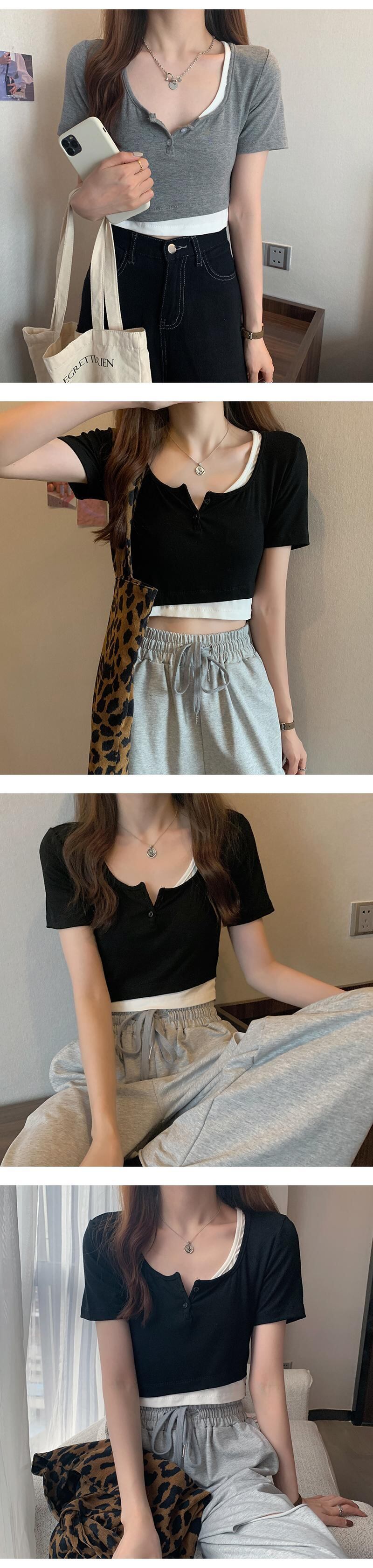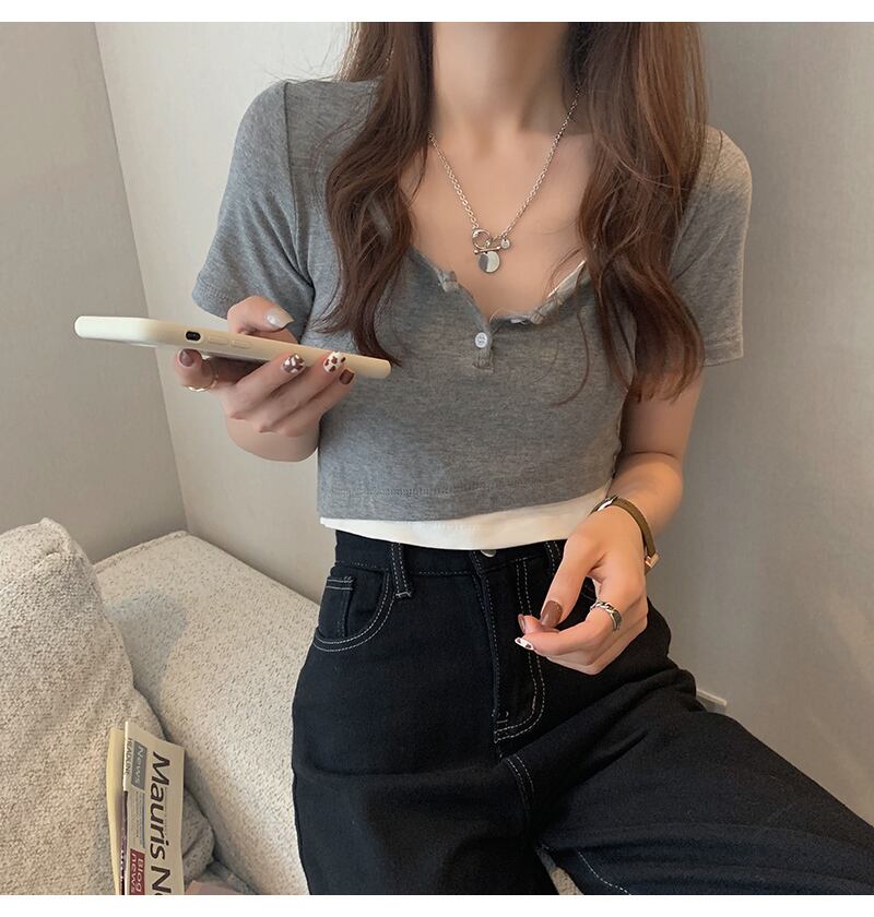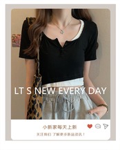 ショートTシャツ夏服ハイウェストウェストスリムトップス 大人ガーリー スウィート キュート カジュアル 夏物 ウエスト コーデ Marchs41186867530