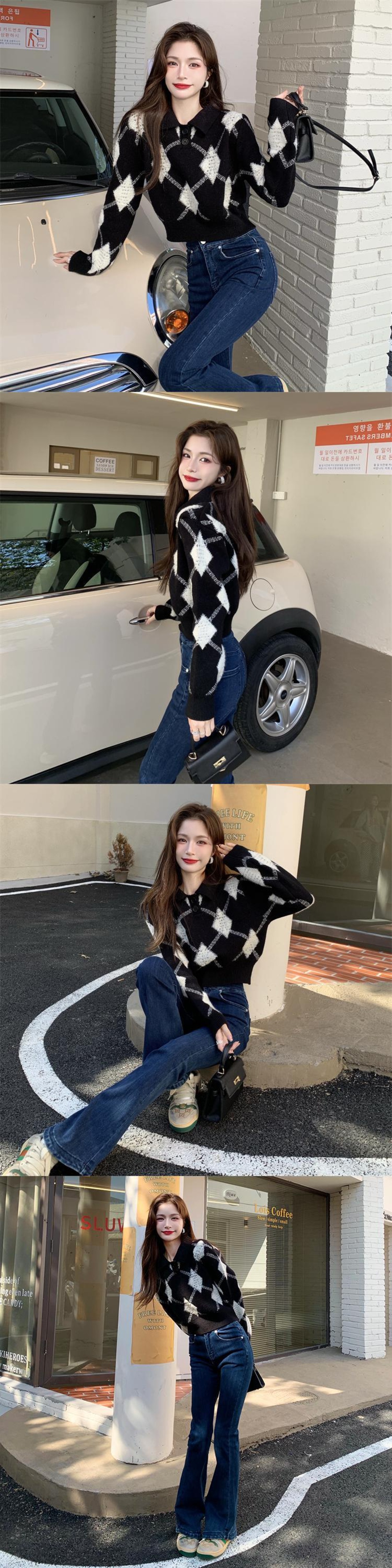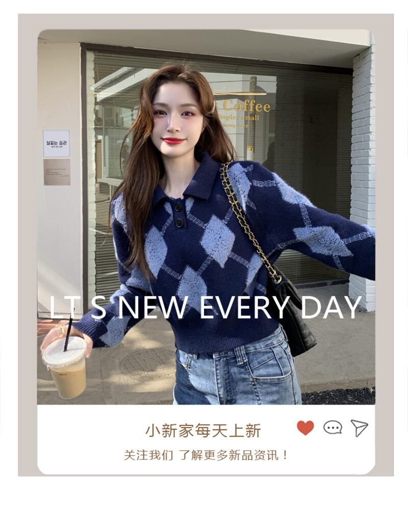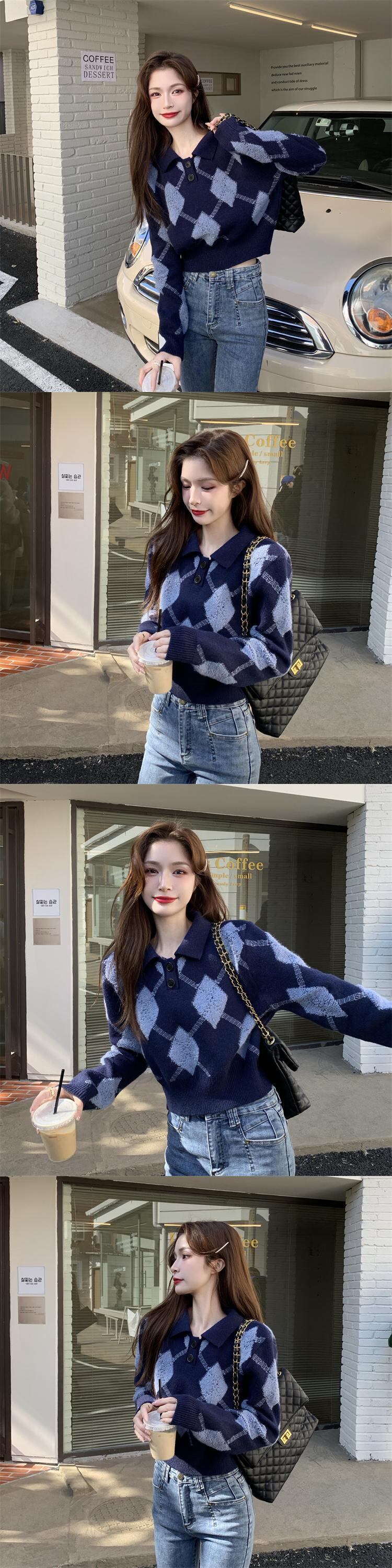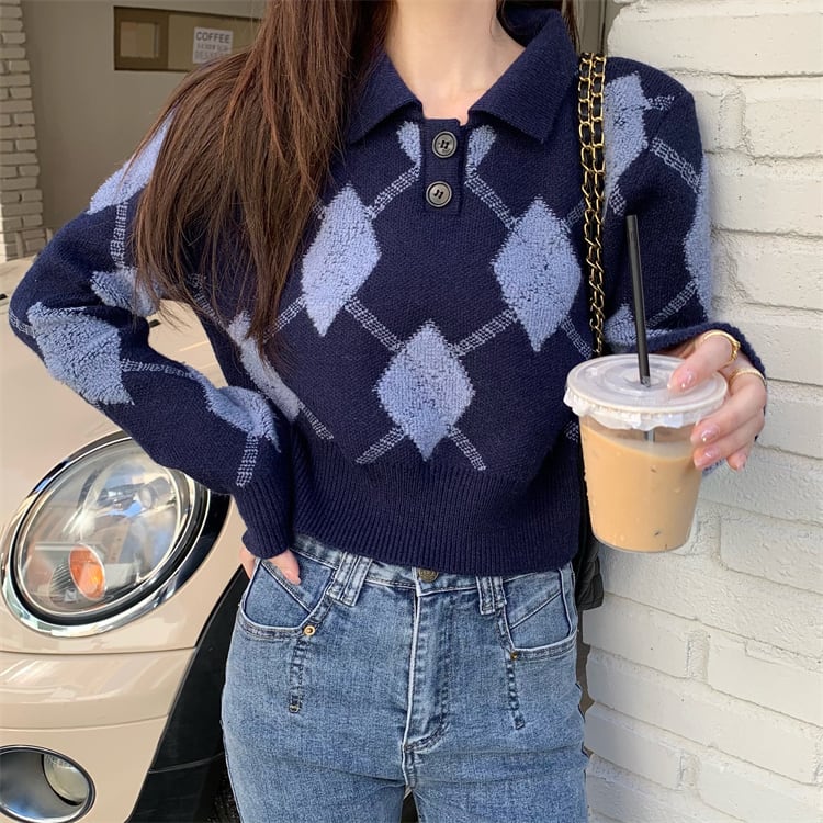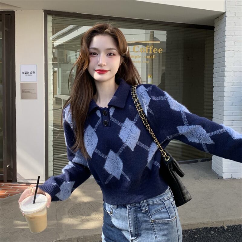 スタンダードカラーショートニットセーター スプリング秋物ゆったりシャツ レトロ 春物 オータム コーデ Marchs76360499781