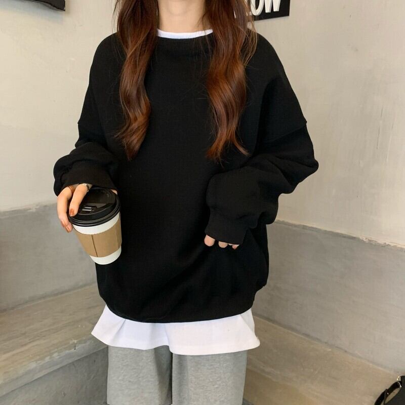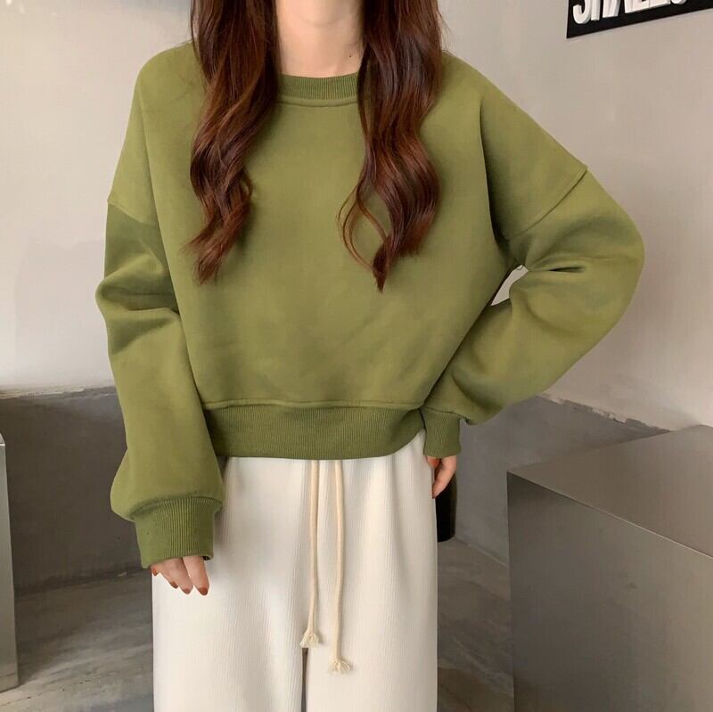 ショートラウンドネックセーター 厚みスプリング秋物プルオーバー ルーズトップス 春物 オータム Oネック コーデ Marchs23478548529