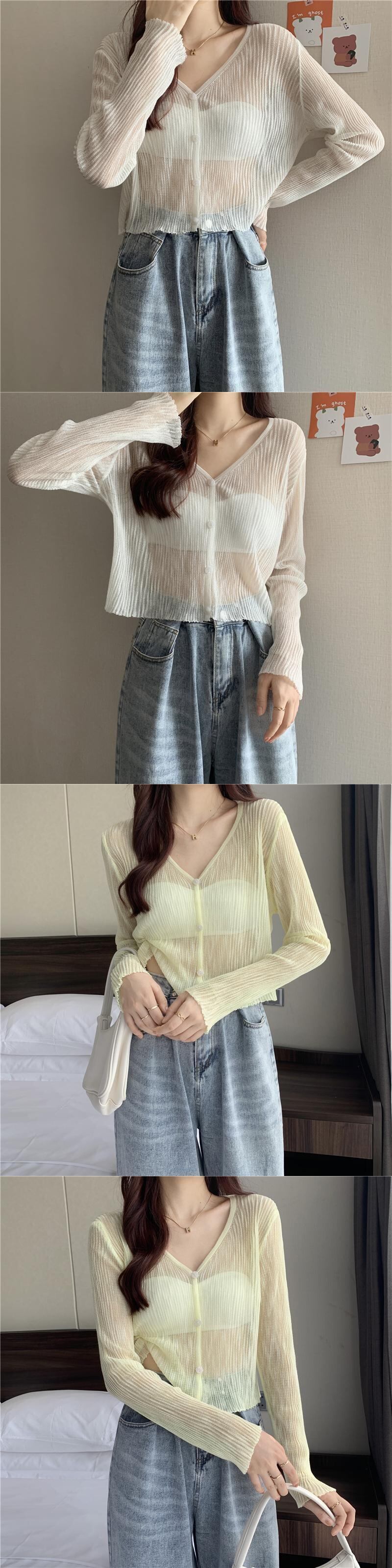 ホワイトカーディガン夏服薄手ブラウス コート ショートトップス ニットシャツ 夏物 シルク コーデ Marchs14558007967