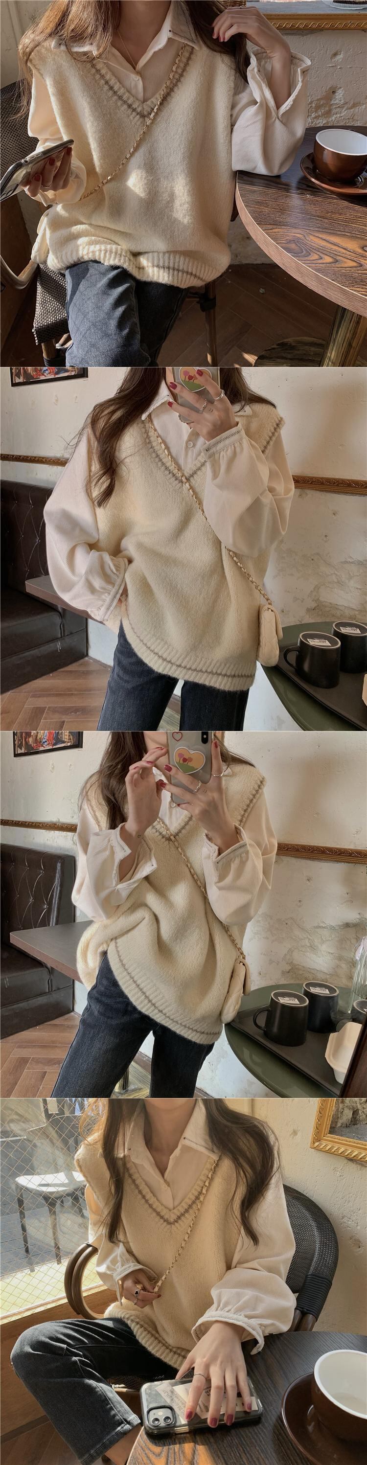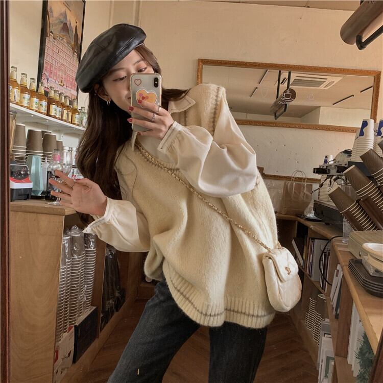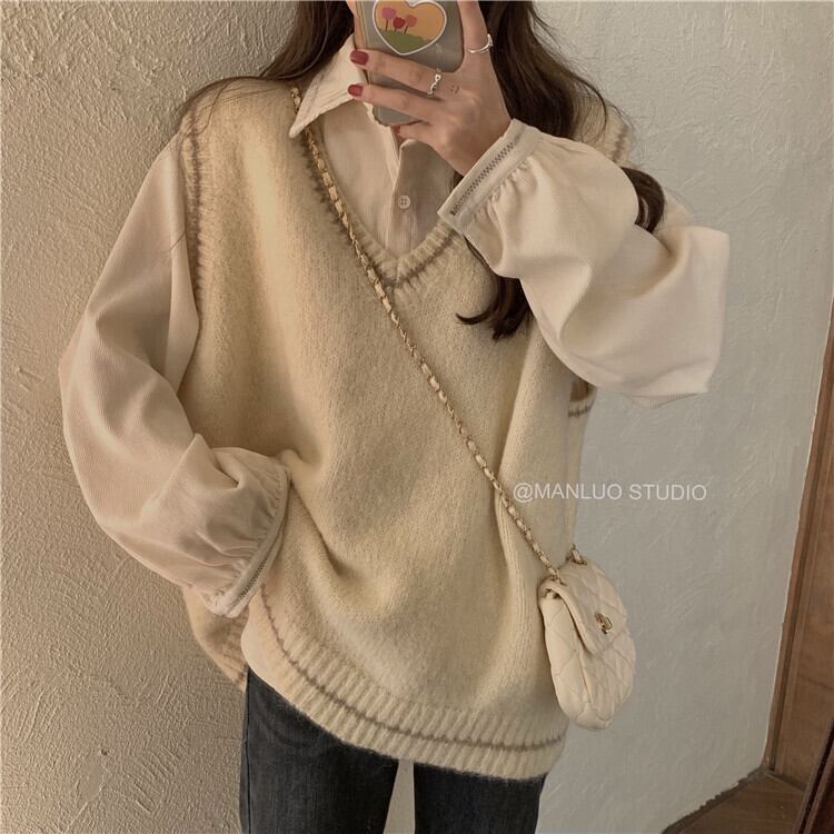 ホワイトシャツ スプリング秋物スタイルニットトップス ロング 春物 オータム 長袖 コーデ Marchs21541876597