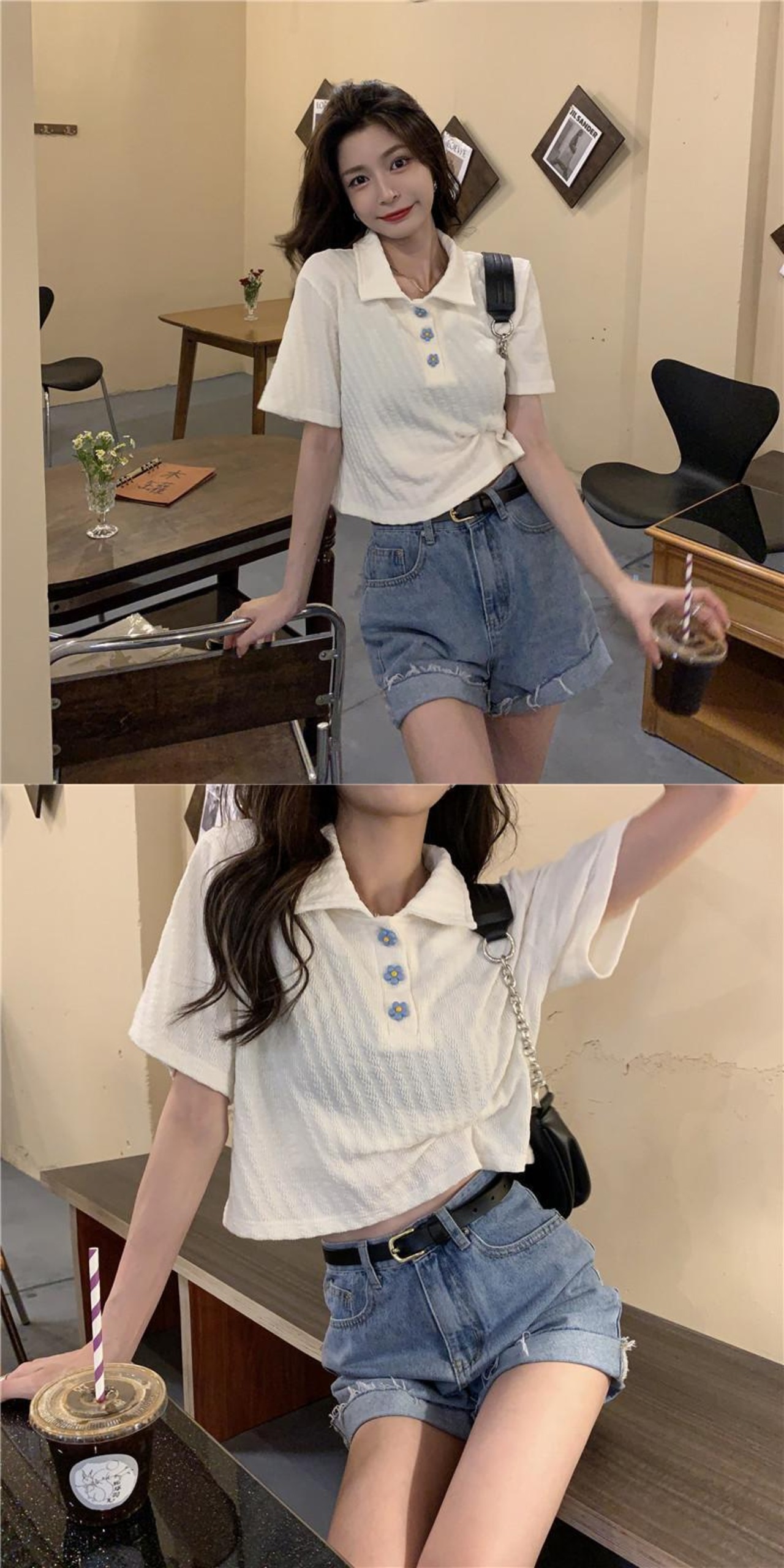 ウェストトップス 夏服半袖スリーブレディースカラーホワイトTシャツ ショート ハーフスリーブ 大人ガーリー スウィート キュート カジュアル 夏物 ウエスト コーデ Marchs25822917730
