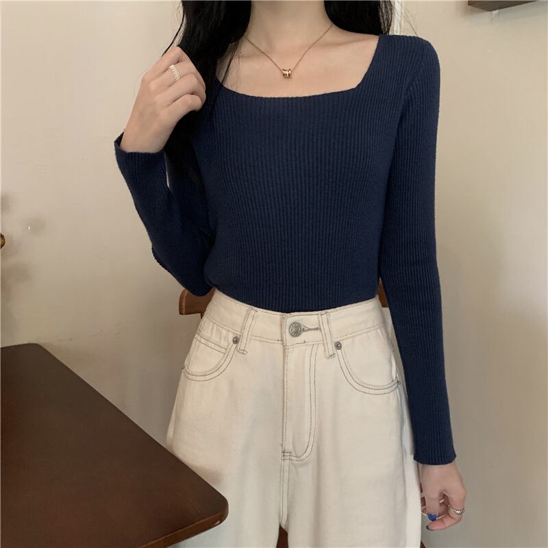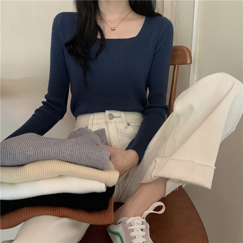 ニットセーター スプリング秋物ゆったりシャツ トップス ロング 春物 オータム スクウェア 長袖 コーデ Marchs1253155958